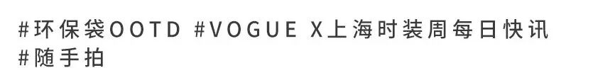 *参与方式:上海时装周期间,任意环保袋OOTD分享或时装周现场VOGUE每日快讯合照图片,在官方微博互动@上海时装周,我们将在活动结束后评选10位最具新意的小伙伴送上本季花样环保袋