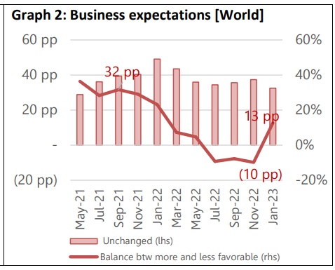 The previously high global order backlogs also steadily decreased from 3.1 months in March 2022 to 2.4 months in January 2023, mainly due to brand and retailers’ restraint to place orders.