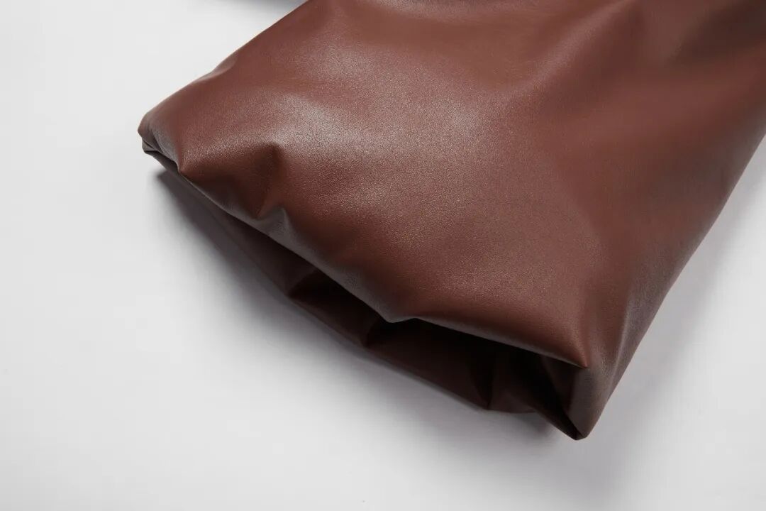 RUOHAN春节限定款,延续品牌经典设计,运用环保皮革制作温暖云朵棉服套装,打造冬季建筑廓形与柔美触感的合一之姿。
