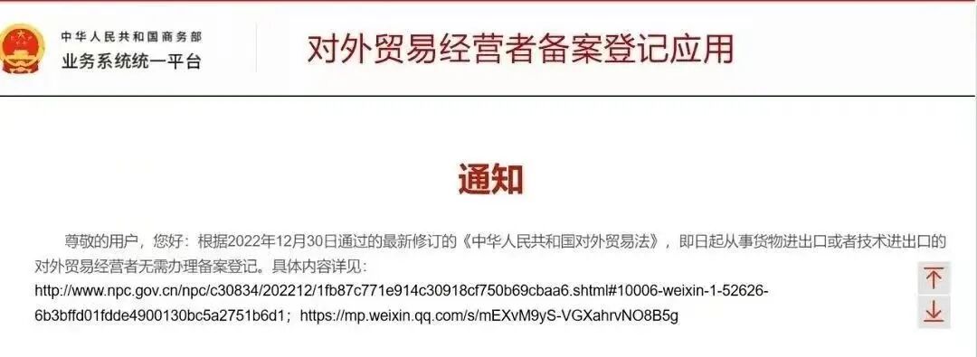 这意味着:即日起,从事进出口业务的企业,不再办理对外贸易经营者备案登记手续,企业自动获取进出口权!(仍需办理海关登记获取报关权限)。