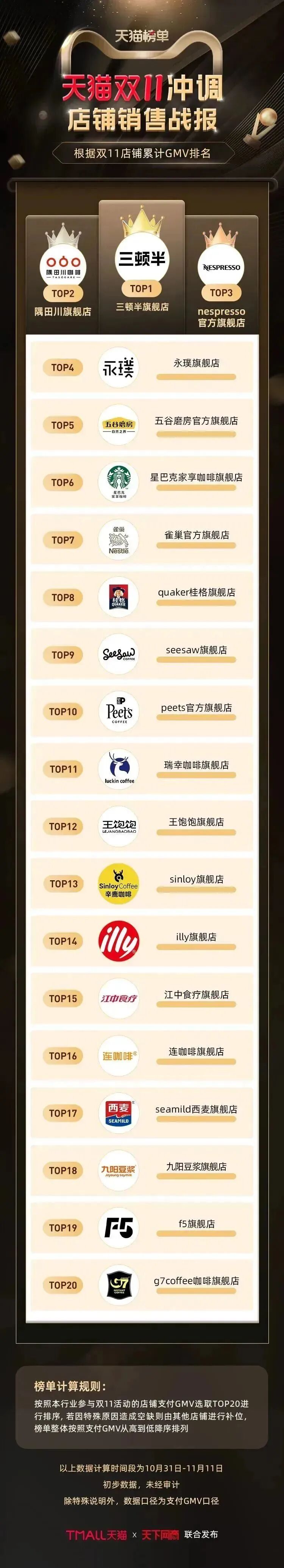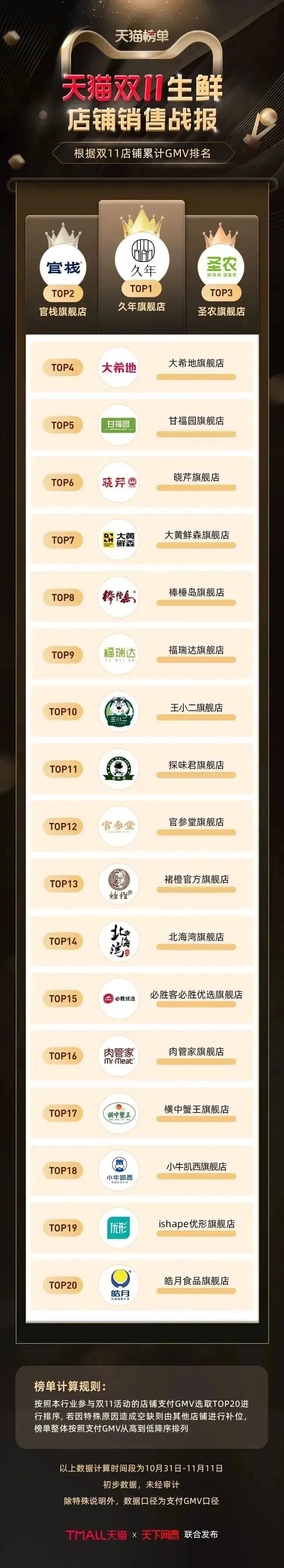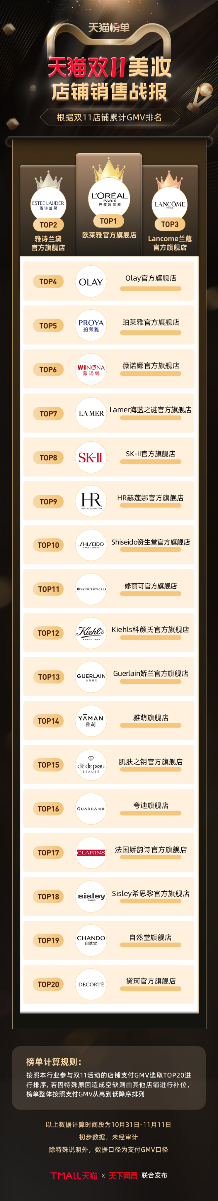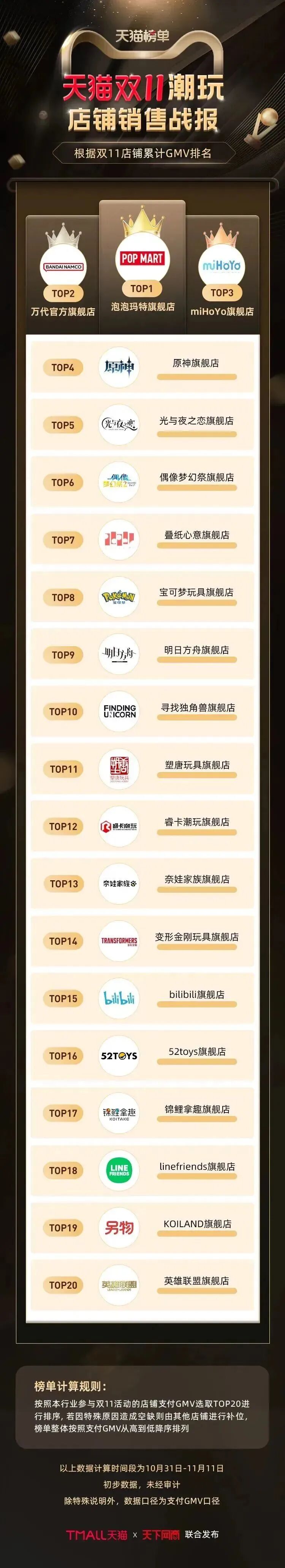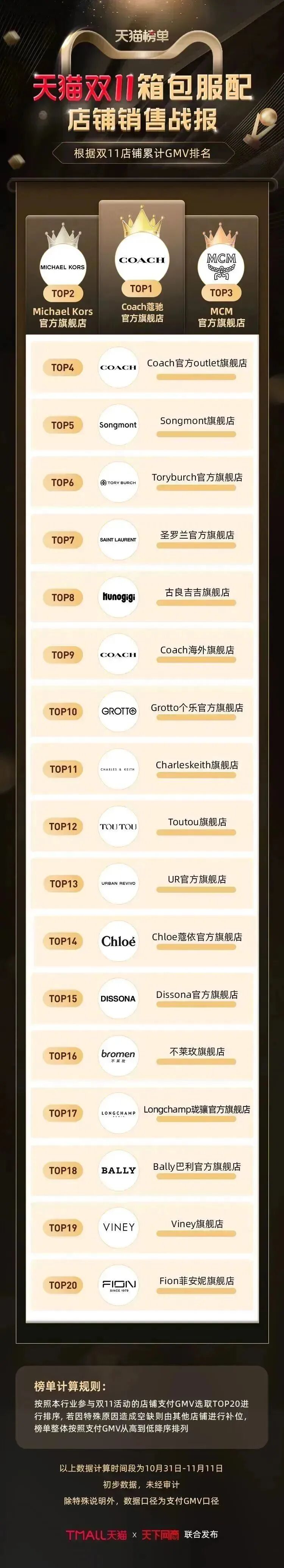 以下为《天下网商》联合天猫发布的2022年天猫双11(10月31日-11月11日)店铺/品牌销售额排行榜,感谢商家们全力以赴,期待来年再战。