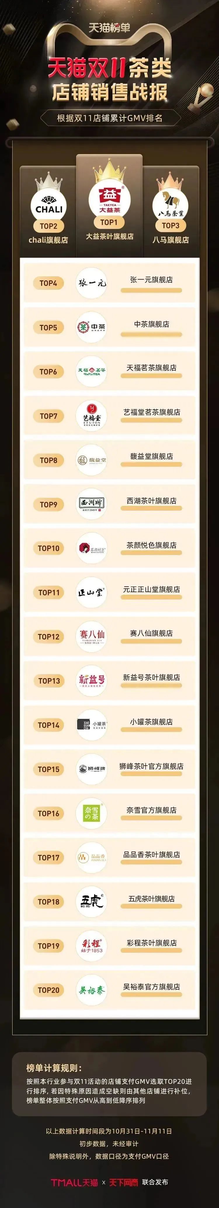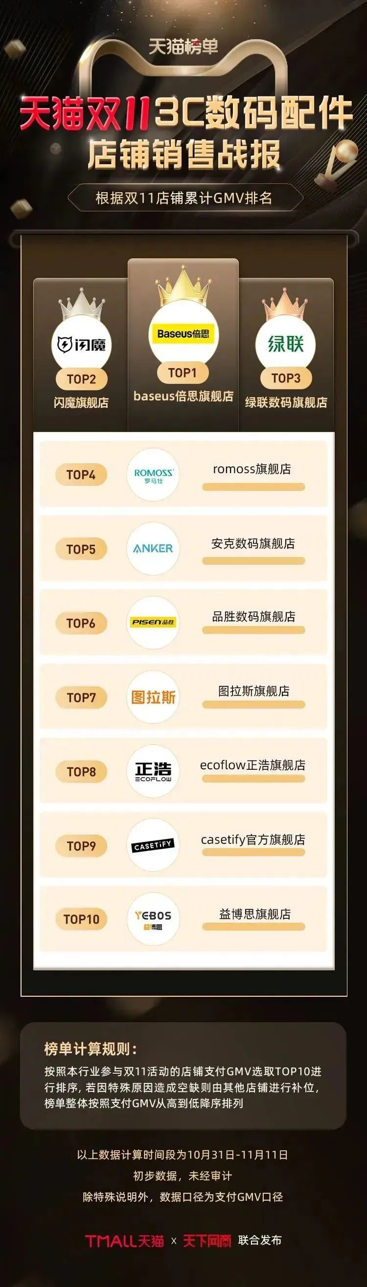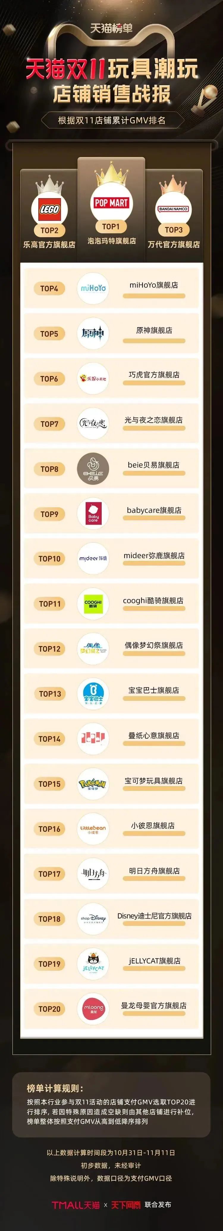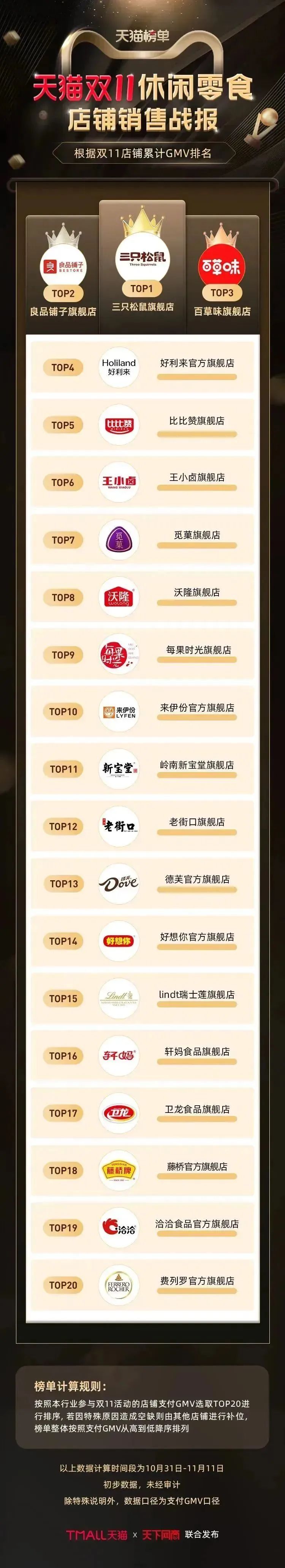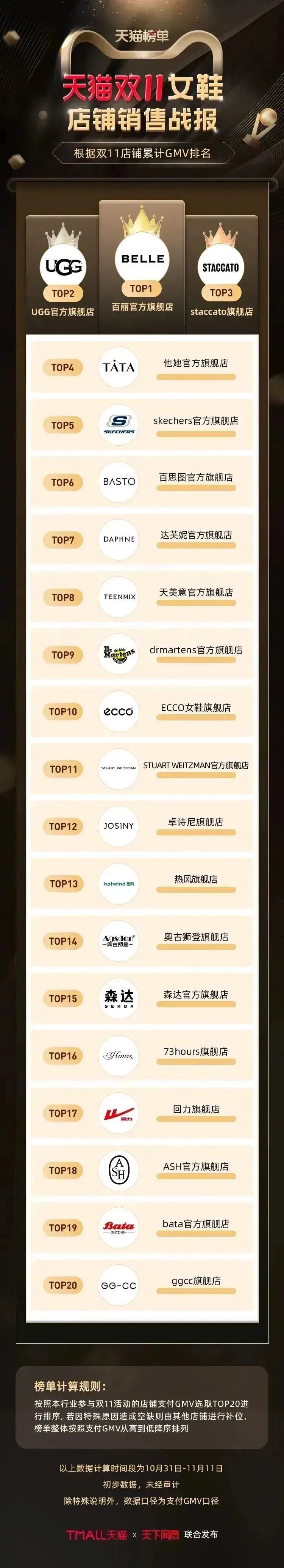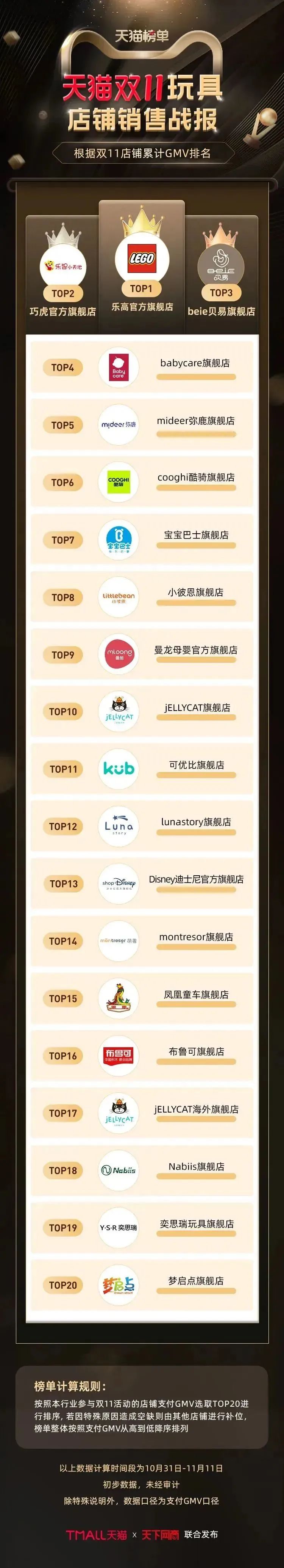 以下为《天下网商》联合天猫发布的2022年天猫双11(10月31日-11月11日)店铺/品牌销售额排行榜,感谢商家们全力以赴,期待来年再战。