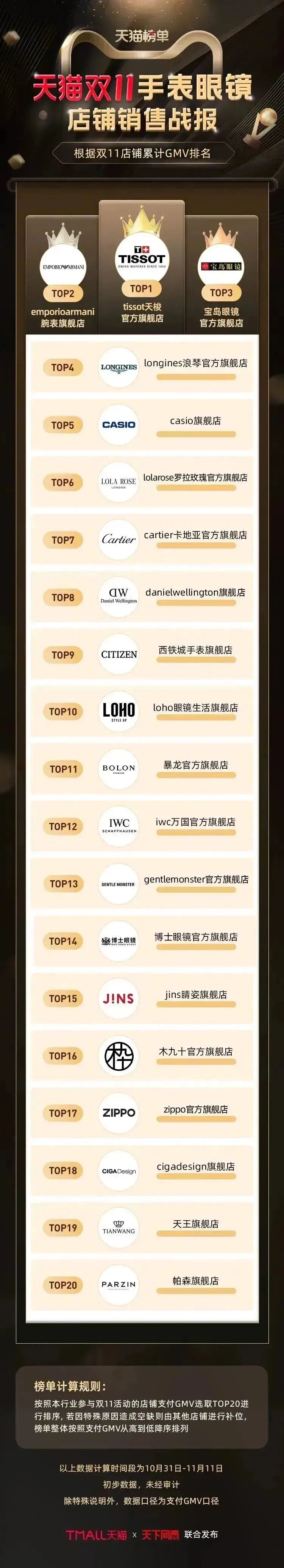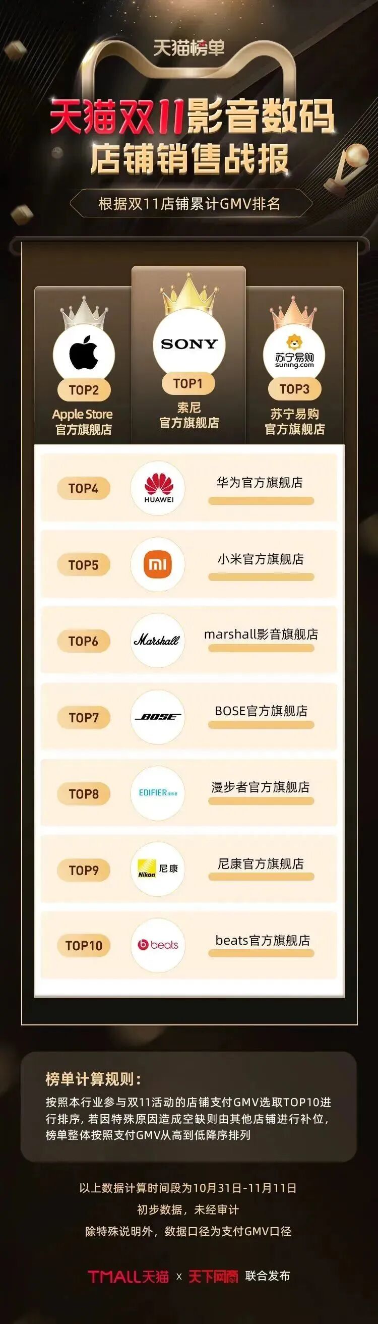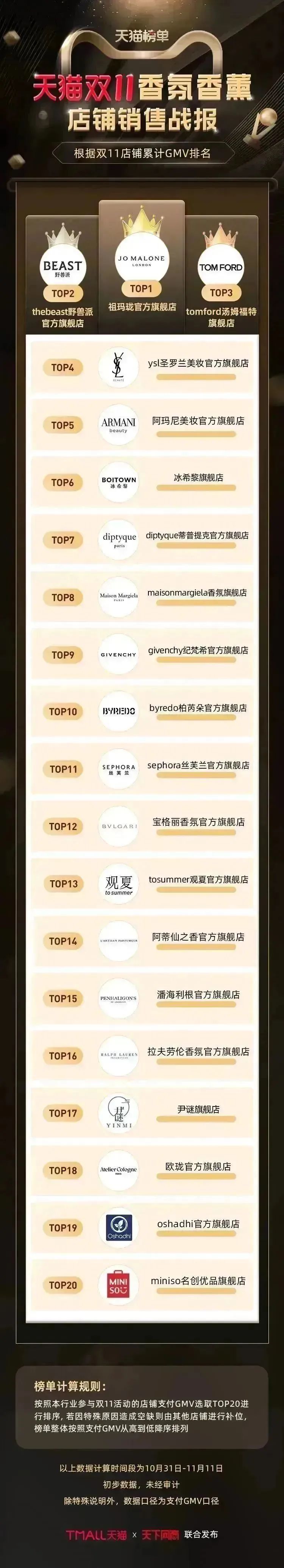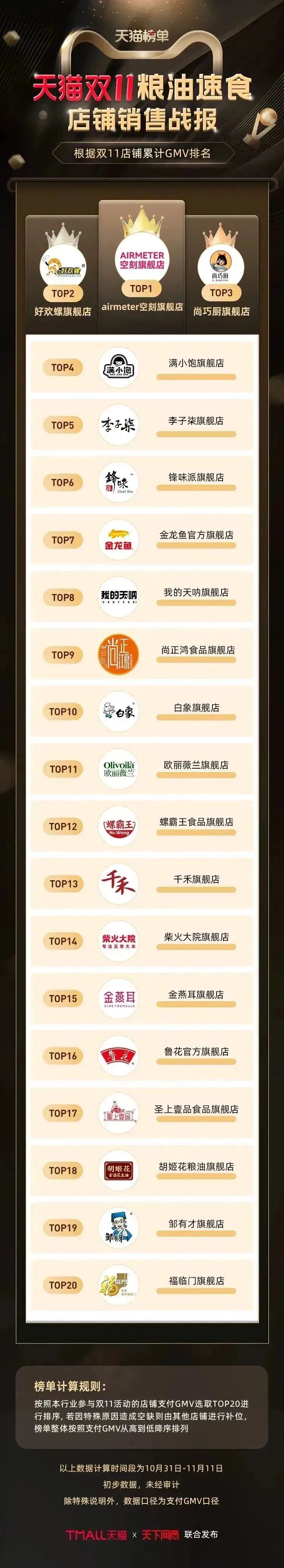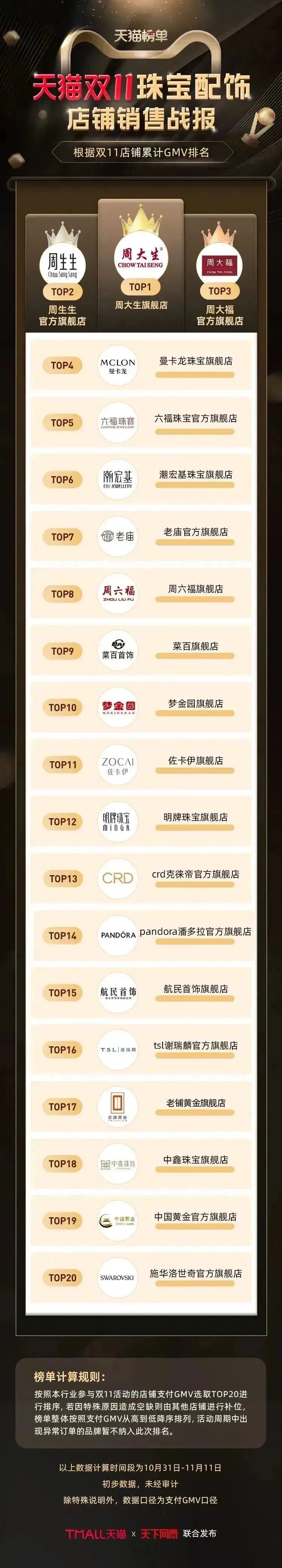 以下为《天下网商》联合天猫发布的2022年天猫双11(10月31日-11月11日)店铺/品牌销售额排行榜,感谢商家们全力以赴,期待来年再战。
