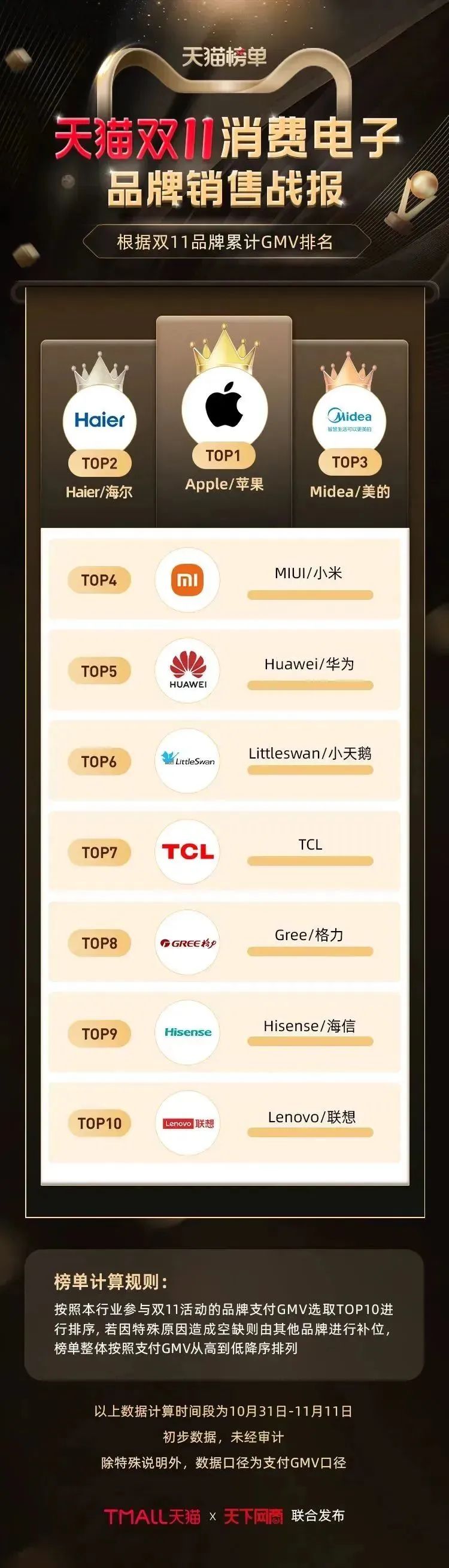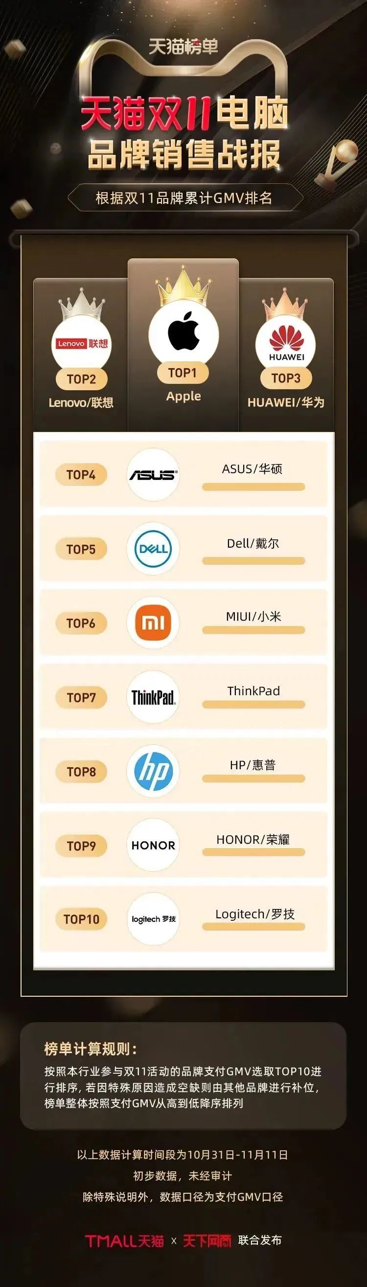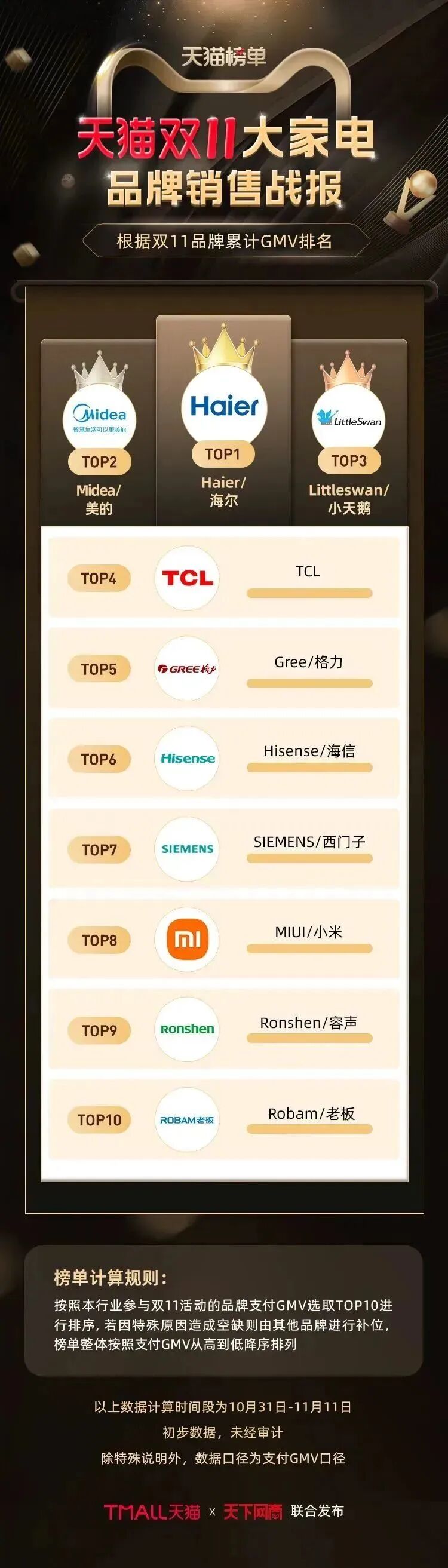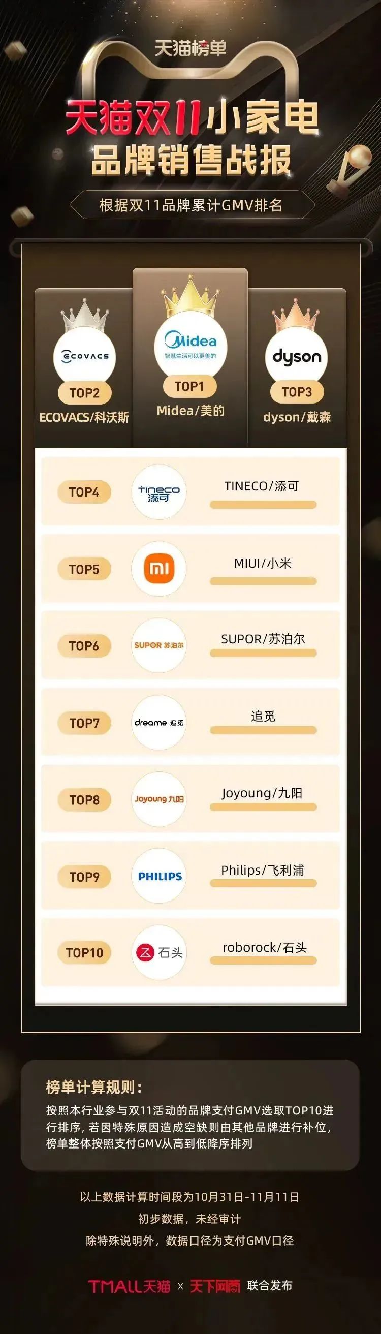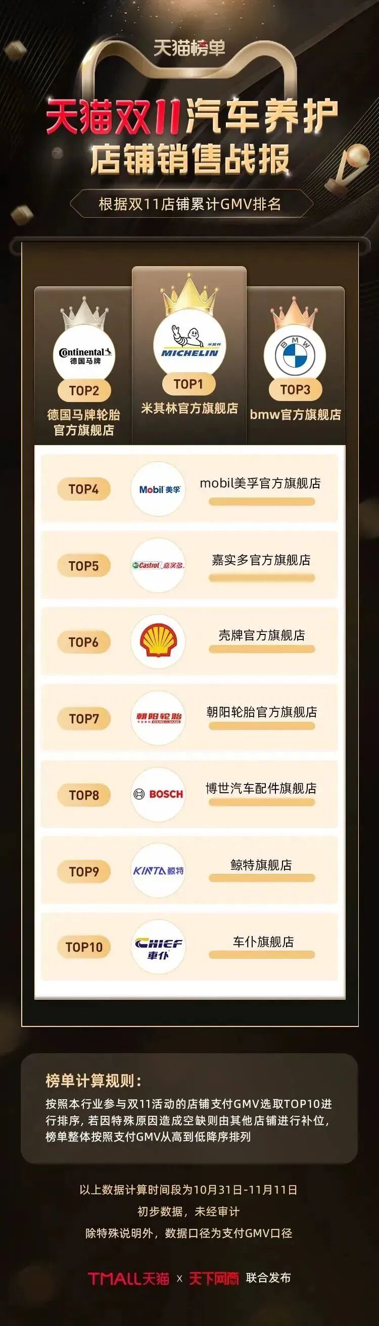 以下为《天下网商》联合天猫发布的2022年天猫双11(10月31日-11月11日)店铺/品牌销售额排行榜,感谢商家们全力以赴,期待来年再战。