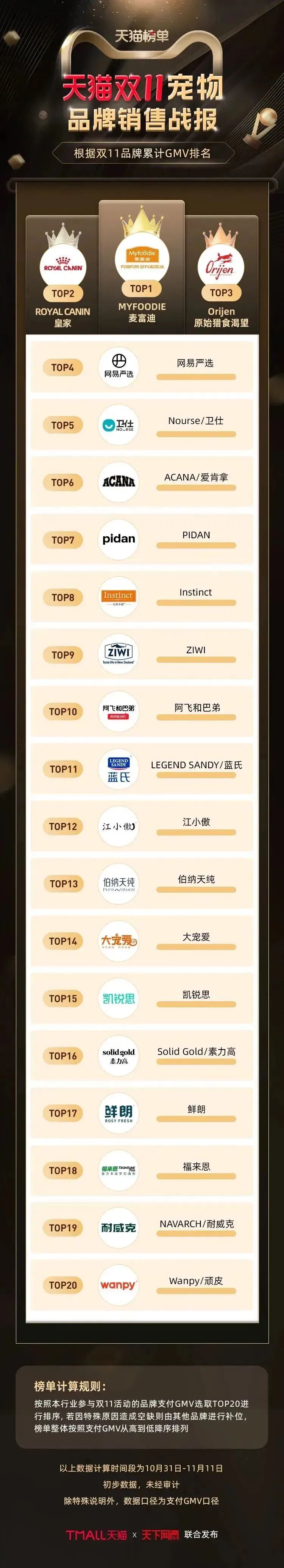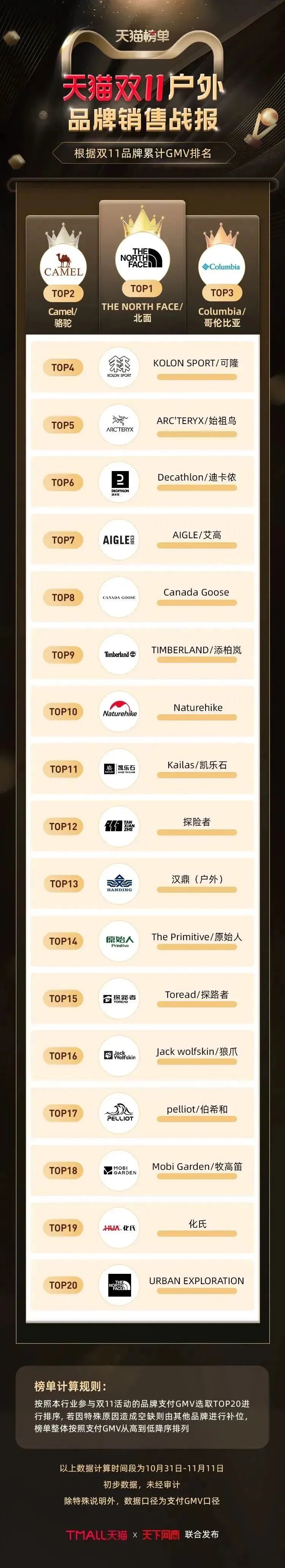 阿飞和巴弟、Pidan、网易严选等50个宠物品牌双11抢先购中成交破千万。宠物品牌销量榜TOP20中,皇家、渴望等海外大品牌之外,国产品牌占据过半位置。国产自行车老牌喜德盛,双11开门红销售额增长接近150%。第12年参加双11的骆驼,全网销售额翻倍增长,露营装备销售额同比增长380%。