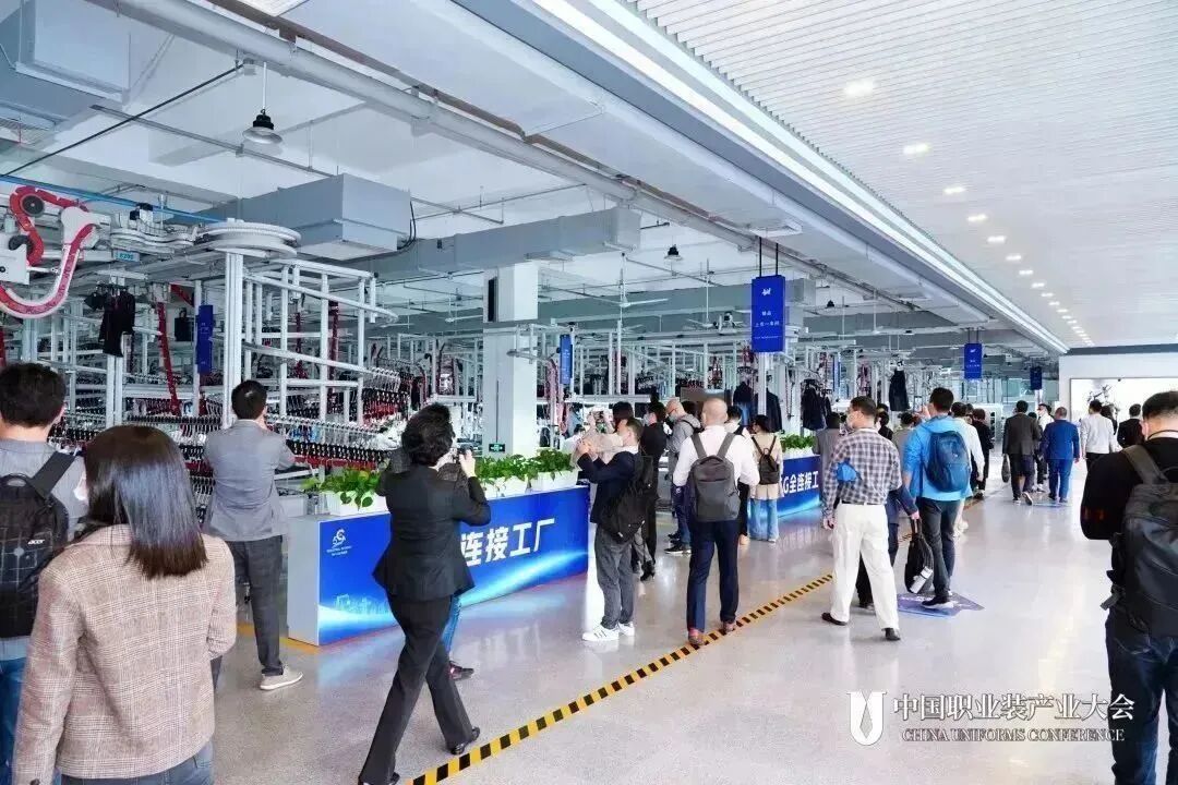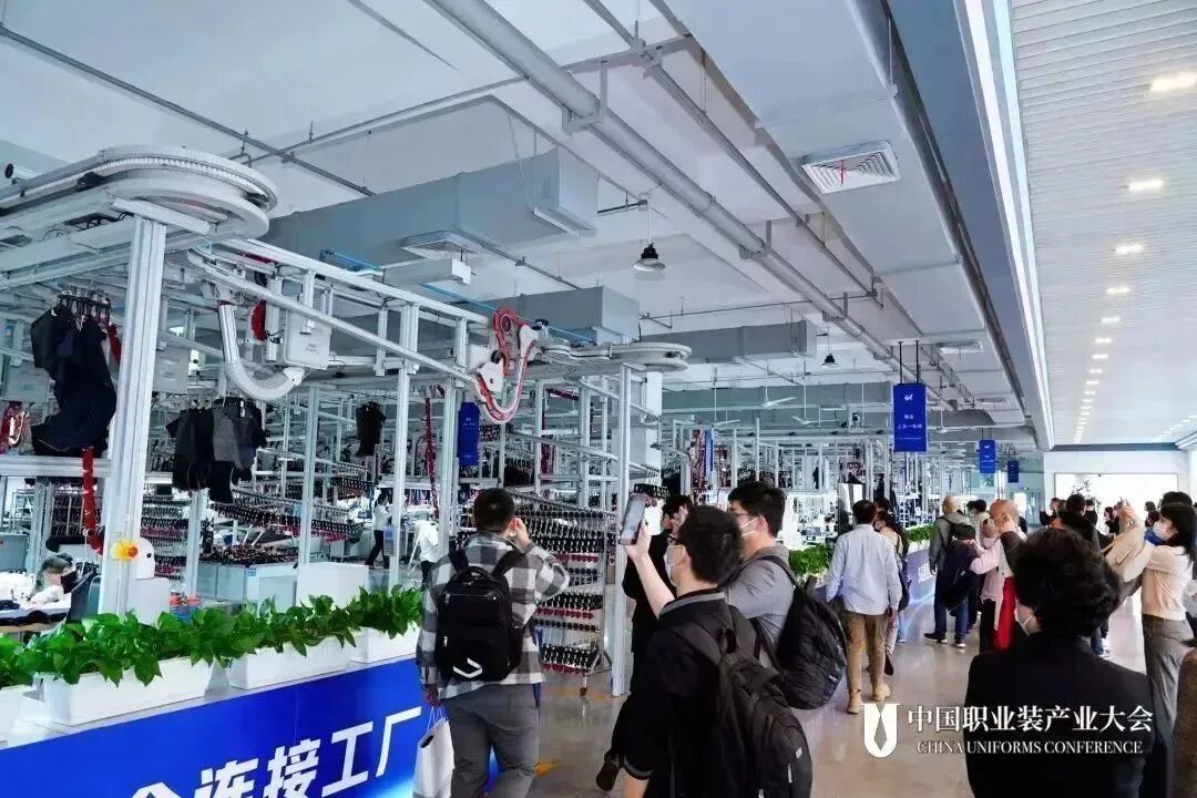 嘉宾对话环节由中国服装协会顾问陈国强主持,雅戈尔服装控股有限公司总经理助理张波、江苏虎豹集团有限公司副总经理周士飞、乔顿集团有限公司副董事长赵飞龙、宁波培罗成集团有限公司董事长助理陆江洋、四川琪达实业集团有限公司副总经理彭夕桐共同围绕“话匠心,谋未来”这一主题,对自身的企业及品牌在职业装领域的发展进行了探讨,嘉宾们一致认为,新时代背景下职业装产业客户有着多元化的需求,职业装相关企业及品牌需要提升设计创新能力、资源整合能力、文化建设能力、数字化应用能力等,以此保持企业的竞争优势。此外,面对竞争,要从“匠心”出发,强化内功,以创新谋求突破,实现逆境生长。除了精彩纷呈、亮点频出的大会议程外,2022中国职业装设计大赛暨中国校园服装设计大赛决赛及颁奖仪式、2022中国职业装产业大会配套展示空间,以及雅戈尔集团“5G全连接工厂”的参观交流等丰富的活动,也将本次活动持续推至高潮。在大会现场外,近20家涉足面辅料、智能设备、终端零售等不同领域的职业装企业代表,将尖端技术、前沿产品及至臻服务带到现场,让与会嘉宾充分感受到中国职业装产业于此汇聚起的磅礴力量。