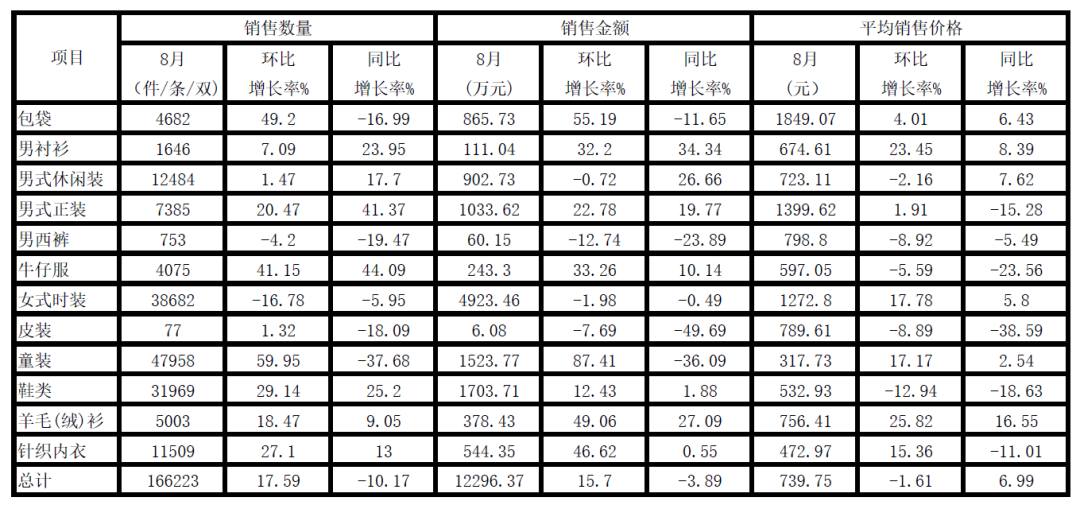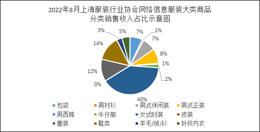 2022年8月份上海服装行业协会网络信息服装商品分类销售情况表