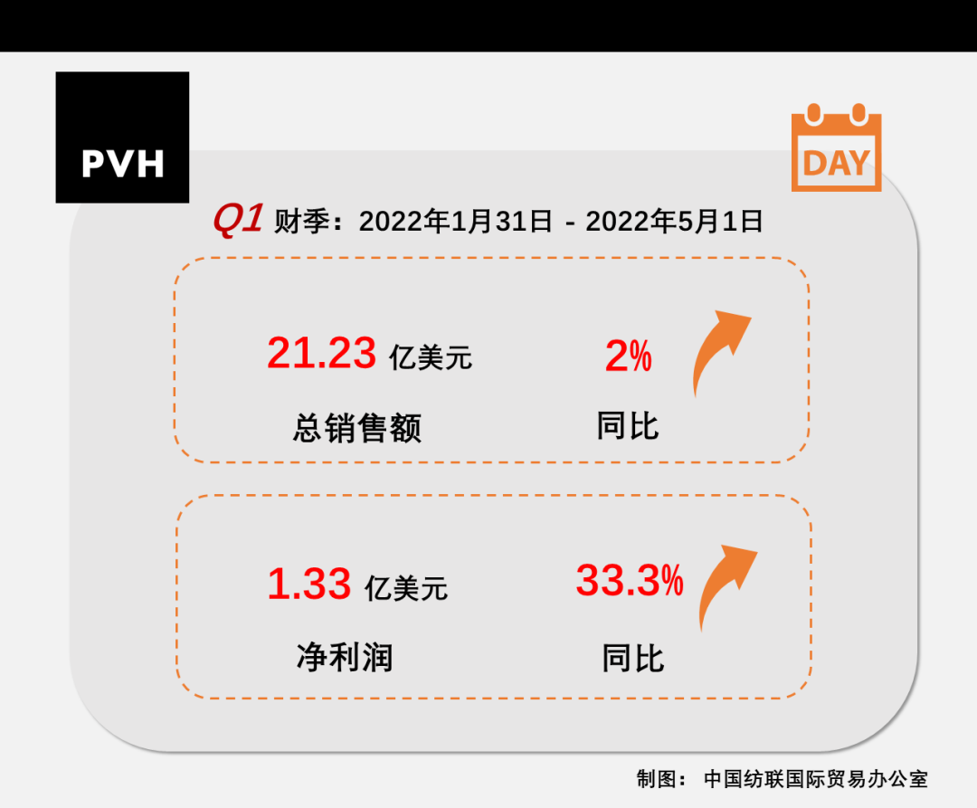 近日,Calvin Klein和Tommy Hilfiger品牌的母公司休森集团(PVH Corp.)发布了截至5月1日的公司2022财年一季度业绩表现。根据财报显示,PVH集团一季度销售额21.23亿美元,同比增长2%;净利润1.33亿美元,同比增长33.3%。