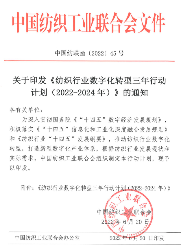 附件:《纺织行业数字化转型三年行动计划(2022-2024年)》.docx
