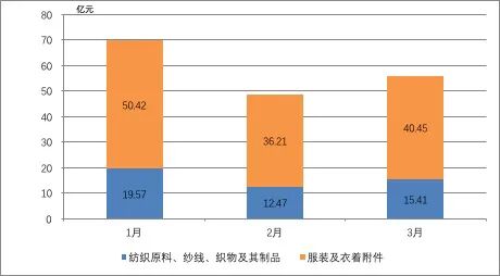 2022年1-3月,上海市纺织行业运行总体平稳。规模以上纺织业的工业总产值为39.73亿元,同比减少13.6%,服装服饰业总产值为46.64亿元,同比下降6.9%,化学纤维制造业总产值为5.38亿元,同比减少16.2%。据上海市统计局数据显示,2022年1-3月,纺织业规模以上工业总产值基本都有一定幅度的下降,纺织品类同比下降幅度较大,服装业上下波动幅度不大,化纤制造业产值体量不大,但比去年同期下降幅度增大。可见,2022年上海纺织服装业产值同比下降幅度较大,经济运行情况不佳。