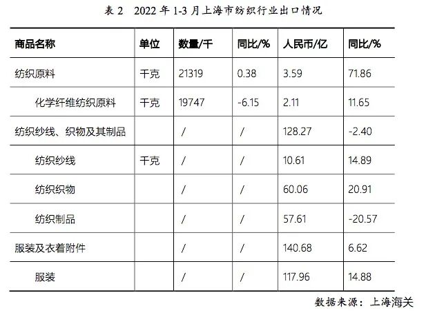 从已公布的上海市统计局数据来看,2022年1-2月上海纺织业营业收入25.42亿元,同比下降18.1%, 利润总额0.83亿元,同比下降59.6%,税金总额0.43亿元,同比增长23.7%,服装服饰业营业收入42.02亿元,同比增长6.8%,利润总额0.34亿元,同比下降63.2%,税金总额1.09亿元,是同期3.3倍。化纤制造营业收入达到3.72亿元,同比增长11.7%,利润总额0.18亿元,是同期2倍,税金总额0.07亿元,同比增长68.6%。由此可见,1-2月上海纺织业营收和利润有所减少,服装类营收略有增长,但利润下降幅度较大,化纤营收增长,利润翻番。但随着3月下旬上海疫情迅猛发展,部分企业陆续停工停产,3月数据预计不容乐观。
