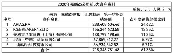 嘉麟杰始终重视与国内、外等既有大客户的定向开发,不断用创新、优质的产品和服务满足客户的需求,稳固其建立的长期合作伙伴关系。在2020年全球经济形势及行业环境均不景气的情况下,尽力保持密切的业务往来。2020年,公司不仅为美国知名面料品牌Polartec供应高端双面绒产品,亦为世界知名的快消品牌研发供应多款运动羊毛品类产品,且仍是全球主要的户外羊毛运动品牌Icebreaker的全球最主要指定供应商之一。