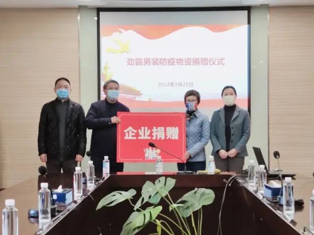2020年疫情至今,劲霸男装已主动捐赠42次,累计人民币510万元、价值6250万元衣服、口罩超千万个,同时集团的“有劲青年”志愿团队已经参与到了街道社区的防疫服务中,并且随时待命愿为疫情防控再加把“劲”。从武汉抗疫,到驰援西安,再到温暖苏州,济援泉州,劲霸集团始终践行着的家国情怀和责任担当,且在未来也将继续不遗余力地参与公益事业。
