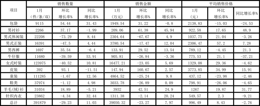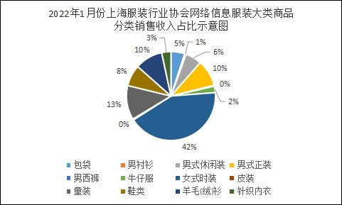 2022年1月份上海服装行业协会网络信息服装商品分类销售情况表