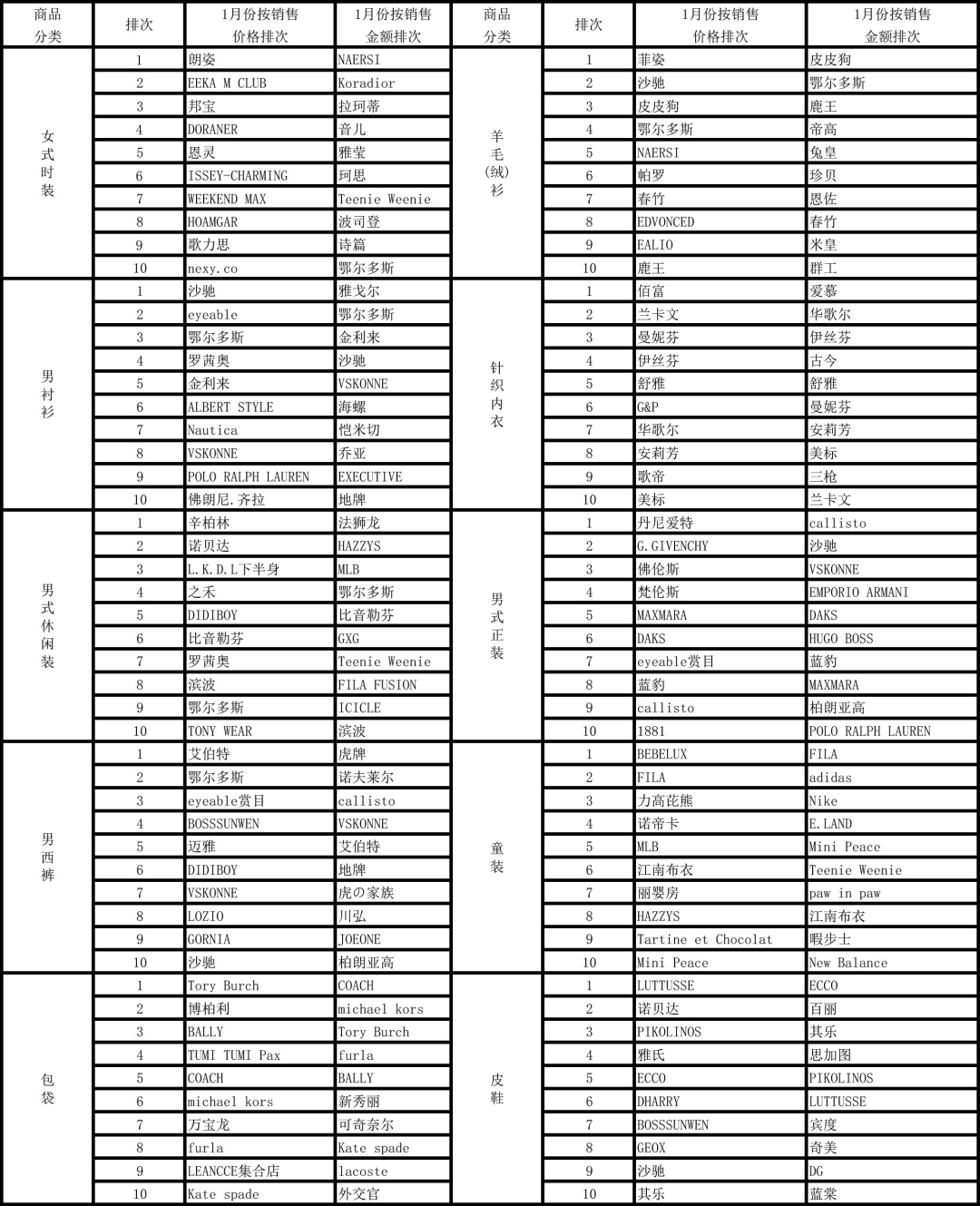 二、1月销售品牌排行榜