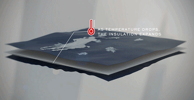 当天气变冷时,中间的织物就会膨胀,使两边的衣服鼓起来,形成带有孔洞的隔热层,从而进行有效的保暖。