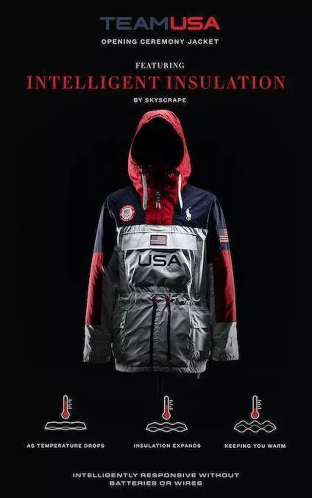 而在2022北京冬奥会上,Ralph Lauren为了让运动员们能够在漫长的开幕式中保持舒适和自由度,在衣服中采用了一种全新的智能保温技术。
