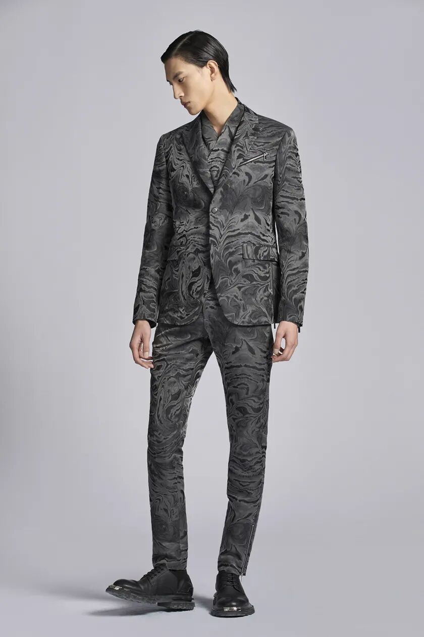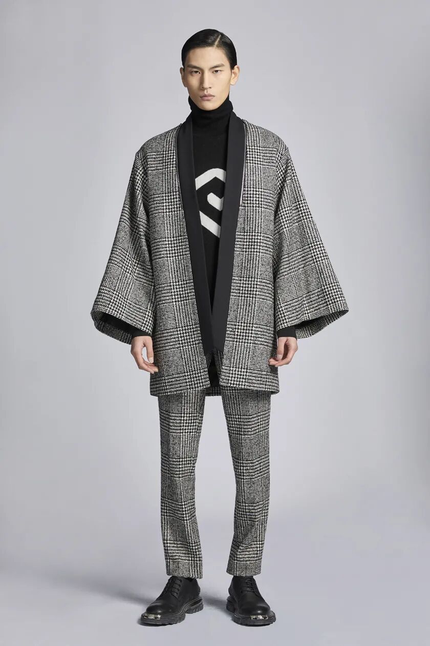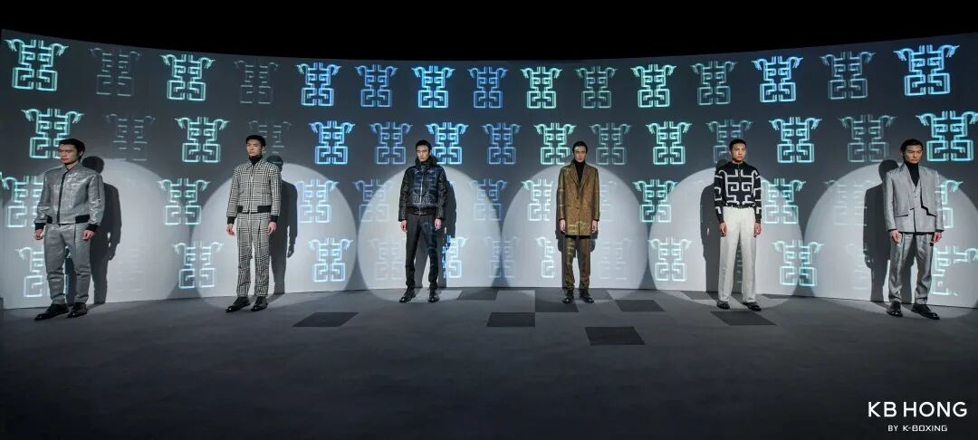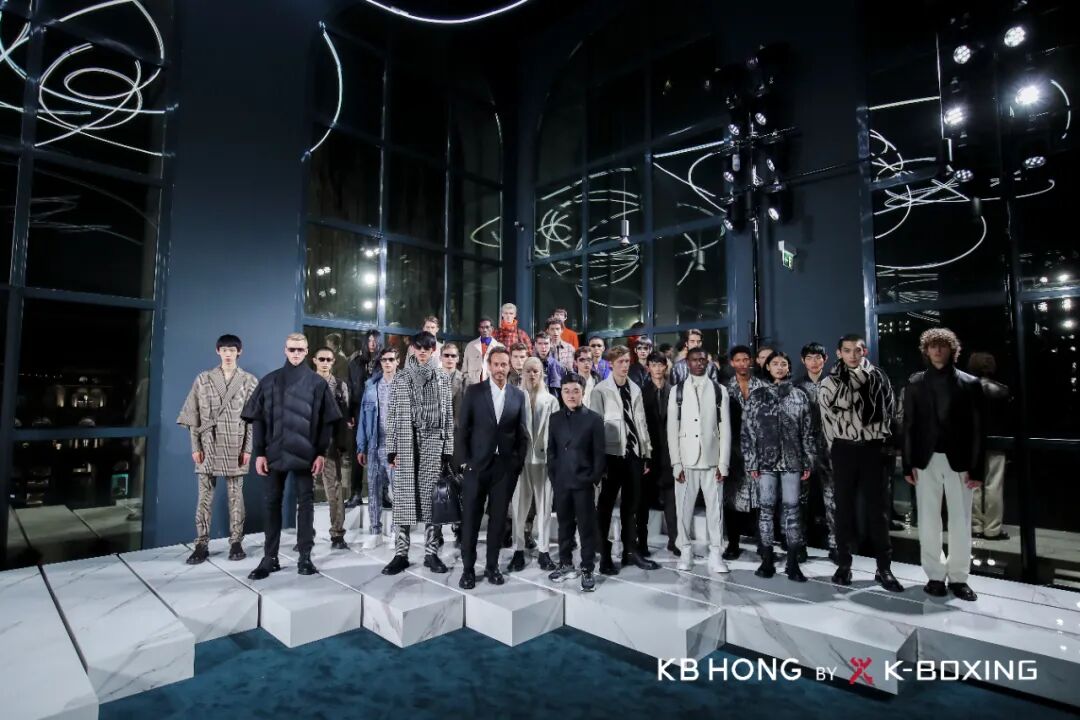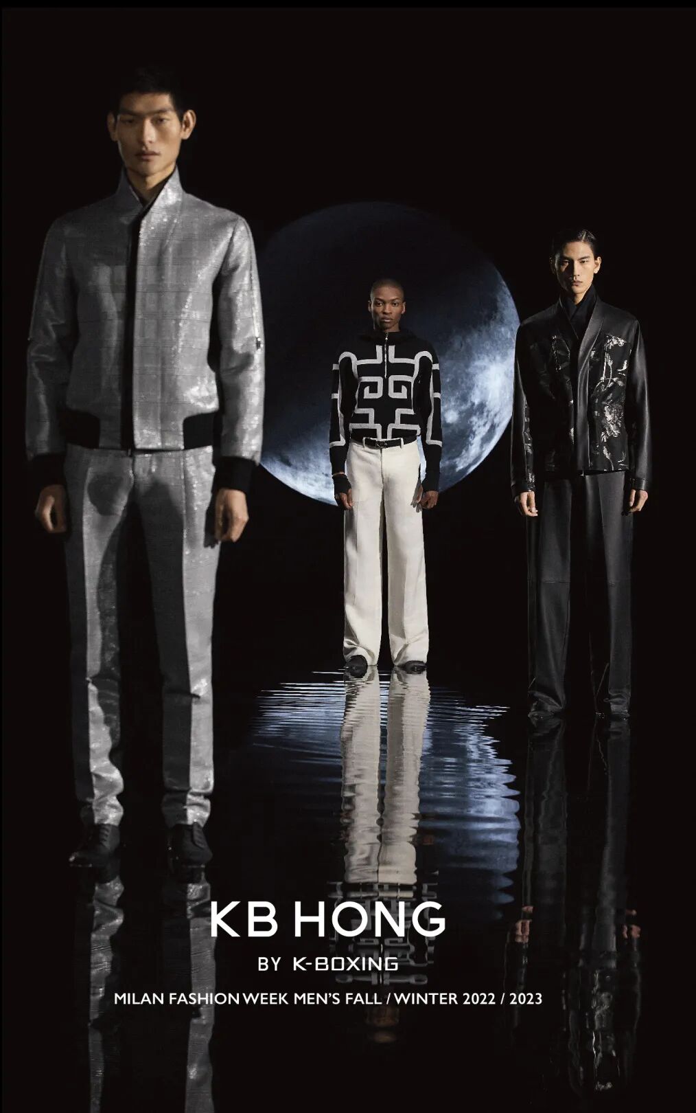 沿承一贯的高端、儒雅、质感与现代,融合国际时尚视野,凝萃东方美学文化,面向全球时尚品味不凡、追求品质生活的男性消费客群,引领现代男士卓尔不群的着装风尚。全新38套KB HONG 22秋冬秀款,依旧保持着精致的设计和对细节的考究。中式传统交叠领和汉服大廓形,内敛沉稳的黑与灰中交织独具东方气韵的中国红、玉石色,未来感金银丝光泽面料营造出无与伦比的奢华高贵感。各种高级进口面料,定制花型面料,缀以KB HONG代表性的格纹和东方玉龙纹,肌理丰厚、立体有型,向世界时尚舞台展现中国“高端新国货”的设计、品质与匠心。