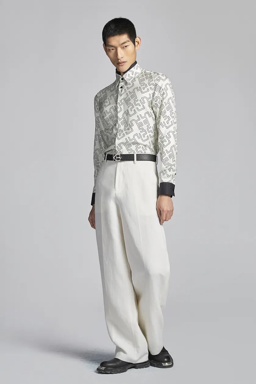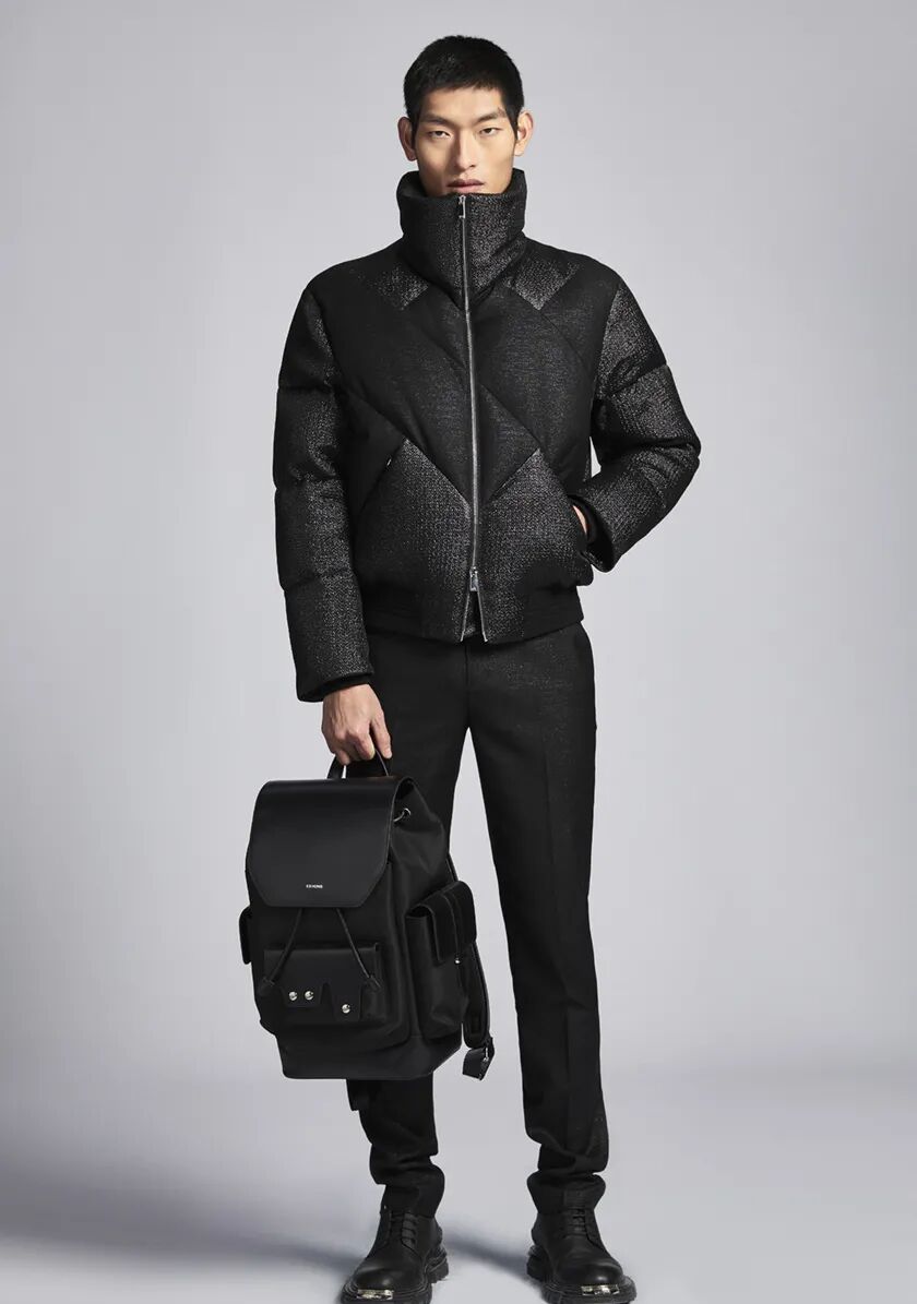 满印的玉龙纹设计,搭配玉石色,打造出极富辨识度的标识性花型,和谐而富有美感。配饰鞋款引入光泽金属,与服饰未来感遥相呼应,达到整体形象的完整性。