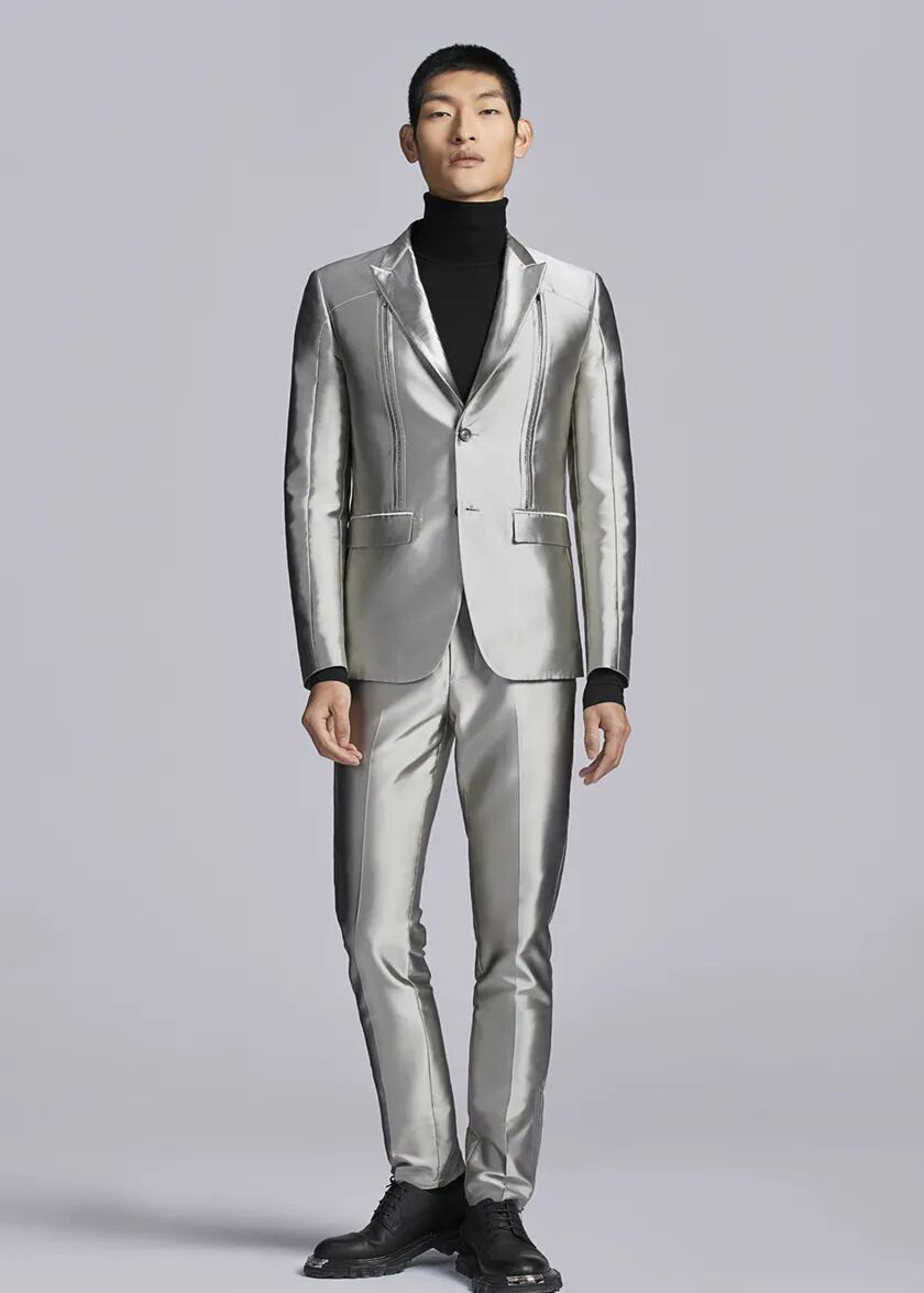 光泽感开场:营造高级未来感。在时装领域,潮流总是常变常新,但设计师们从未停止对于“未来感”的遐想。浩瀚宇宙,多维时空,赋予了时装更多大胆想象的空间与前卫革新的精神。本季KB HONG 22秋冬秀款以富有高级未来感的冷色灰调开场,金属丝光泽面料演绎东方与未来结合、碰撞,为时装注入了全新的张力。