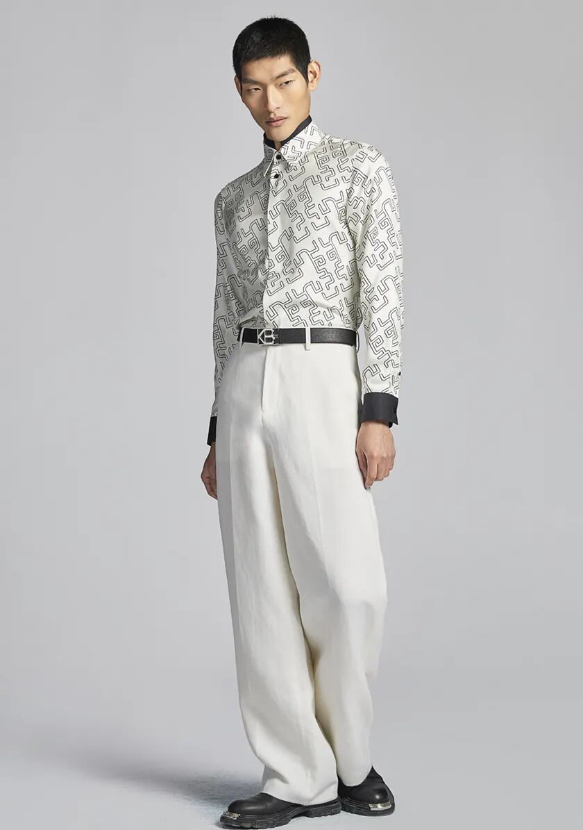 玉龙纹花型:现代化图腾彰显东方美学神韵。KB HONG以独特的东方气韵彰显未来时装的魅力,其中全新花型玉龙纹是本季最大亮点之一。抽象又具现代美感的玉龙纹花型,温润而谦和的玉石色,背后传递出KB HONG对儒雅内敛、刚劲有力的中国男性的赞誉。
