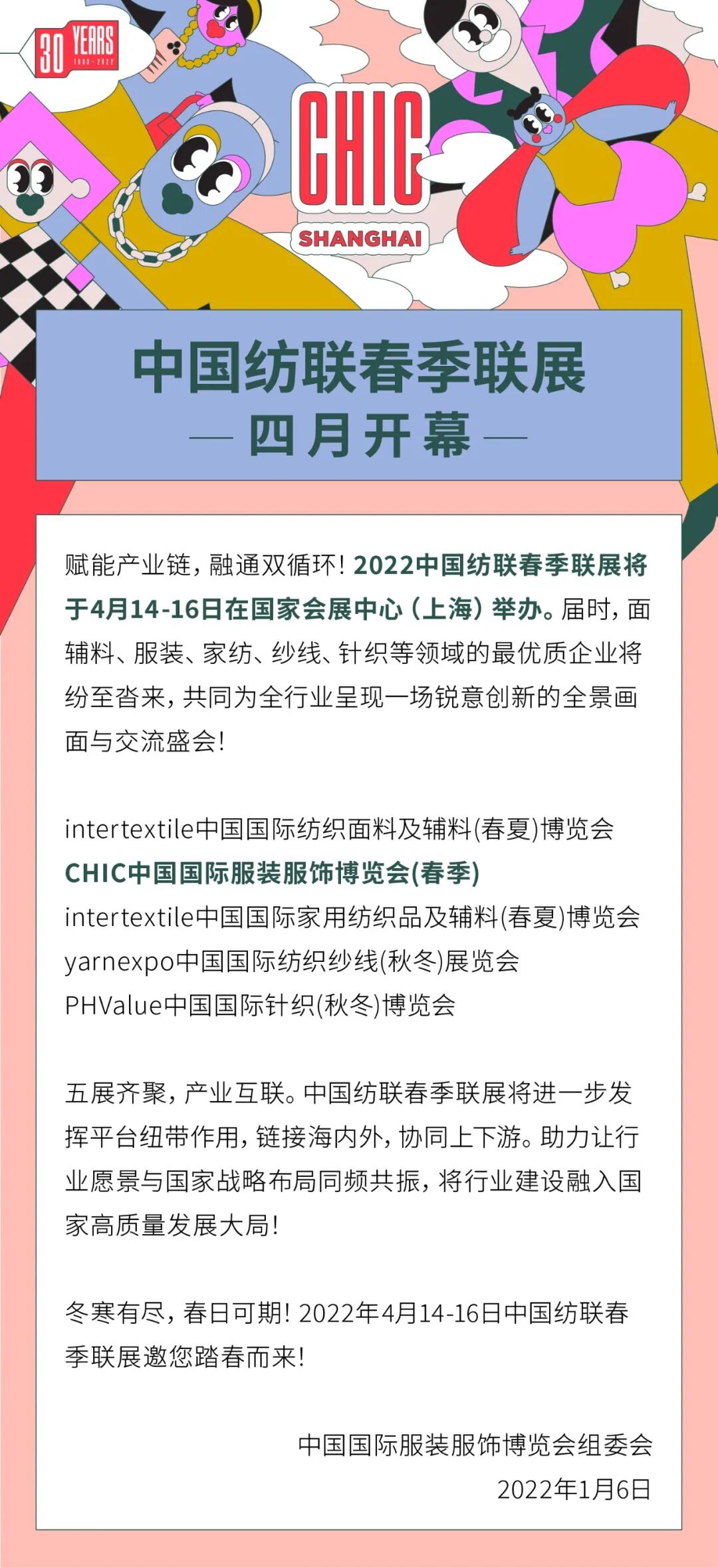 官宣 | 中国纺联春季联展将于2022年4月14-16日举办!