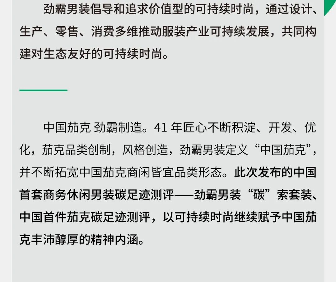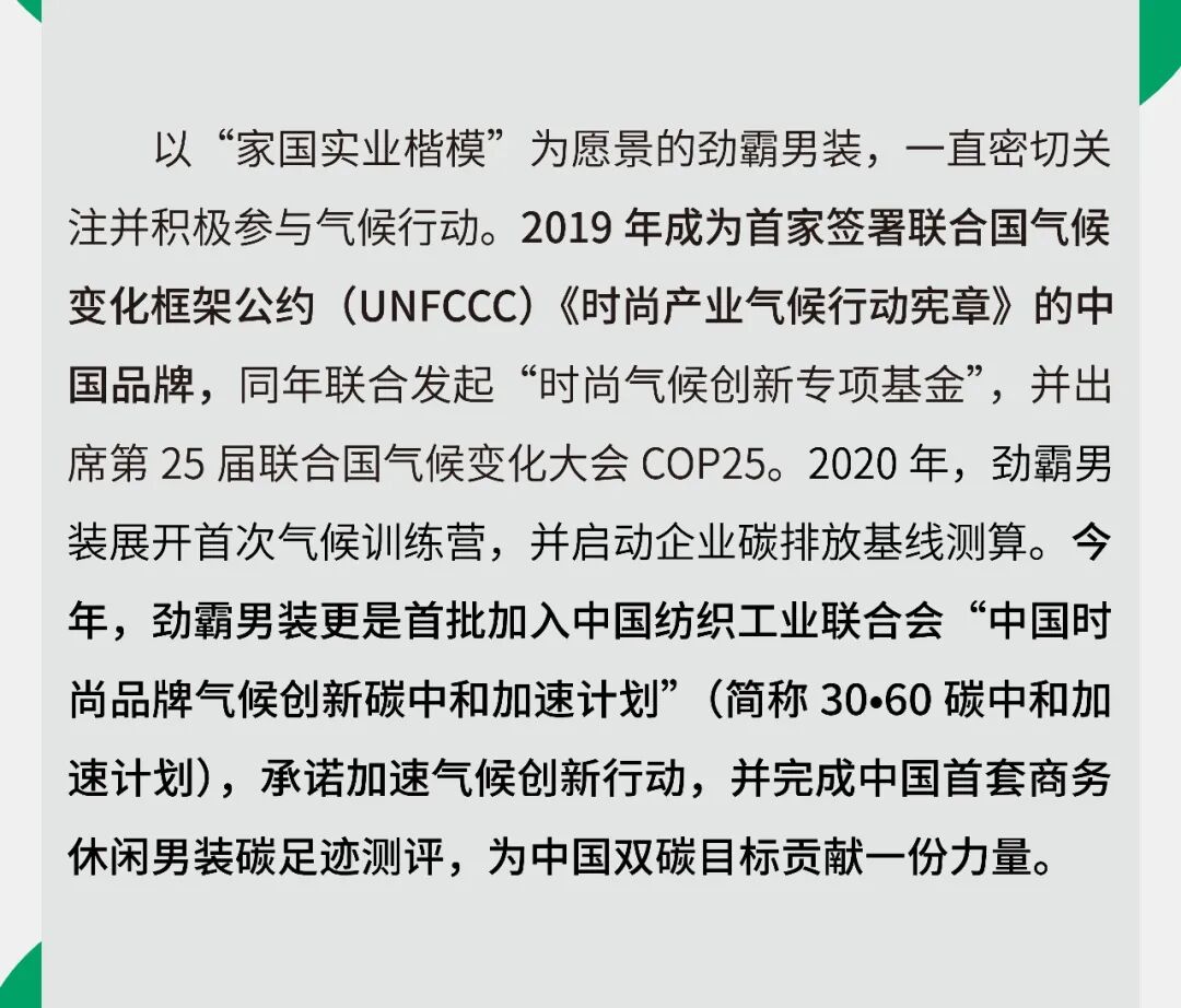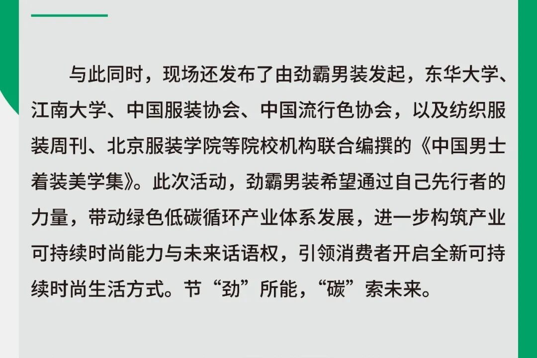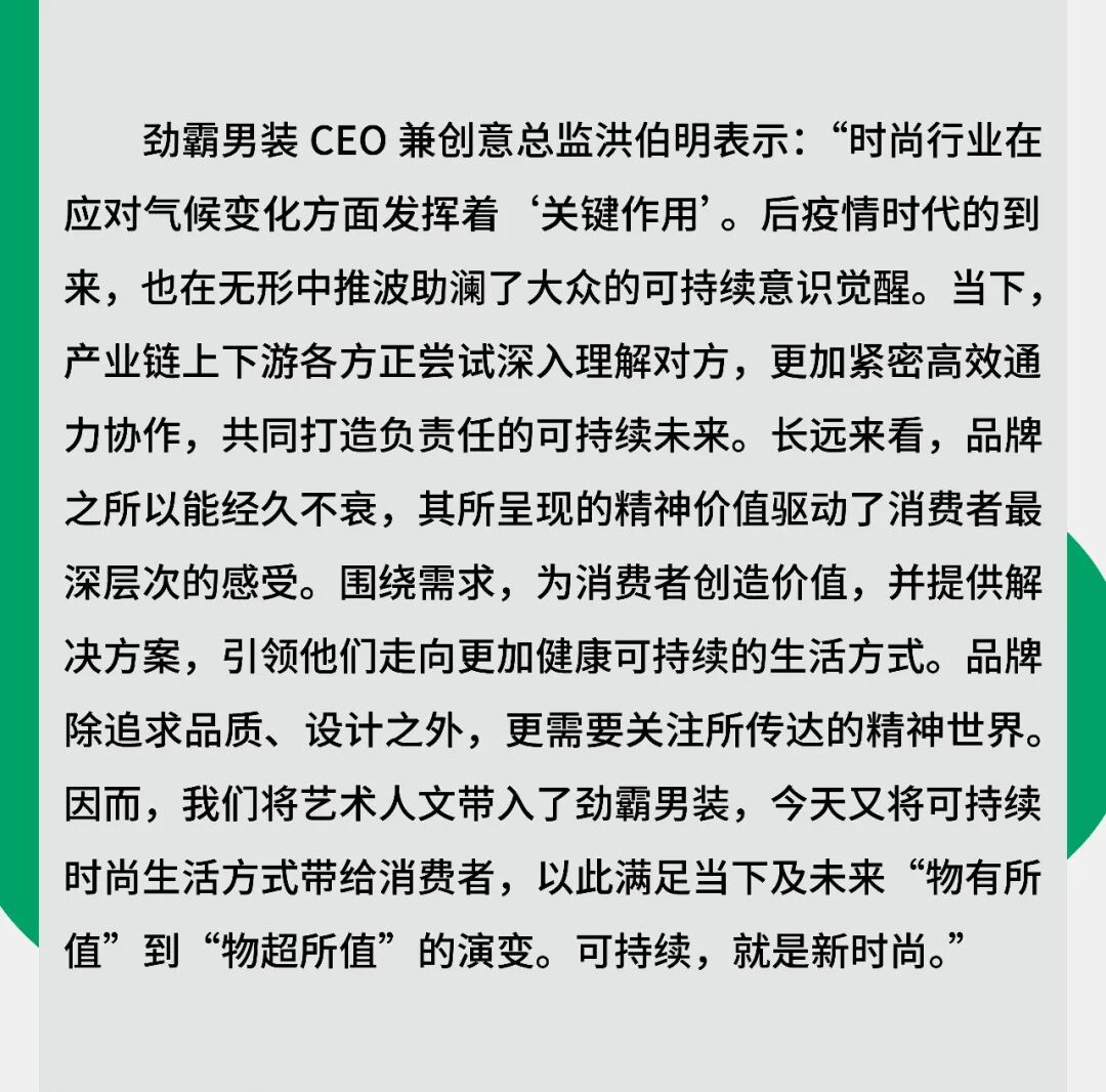 协会副会长单位劲霸男装发布可持续时尚“碳”索套装