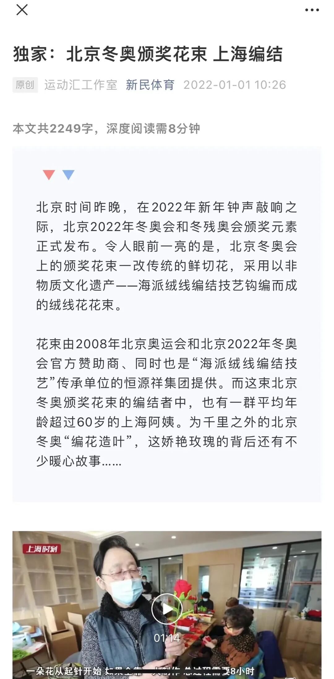 “作为双奥企业,恒源祥五度携手奥林匹克,在此过程中,恒源祥以往主要为中国体育代表团等团队提供礼仪服饰。这次冬奥会,恒源祥除了提供服装、冬奥村的家用纺织品外,我们还创意了一份独一无二的礼物——用恒源祥传承的非遗技艺编结制作颁奖花束。历来鲜花配英雄,我们发现获奖者登上领奖台,胸前佩戴奖牌,手握花束,向国旗致敬、向观众致谢的时候,是他们最辉煌的时刻,但遗憾的是花束不像奖牌,它不便保存,是否可以让这束荣耀之花永不凋谢,成为恒久的纪念?我们想到了恒源祥传承的非遗——海派绒线编结技艺。中国人常说‘情牵一线’,我们希望这根根承载着真、善、美的绒线能让五大洲饱受新冠疫情影响变得疏离的人们更加团结,用无限之线编织全世界的恒好未来。”恒源祥集团董事长兼总经理陈忠伟解释了制作绒线花花束的初衷。