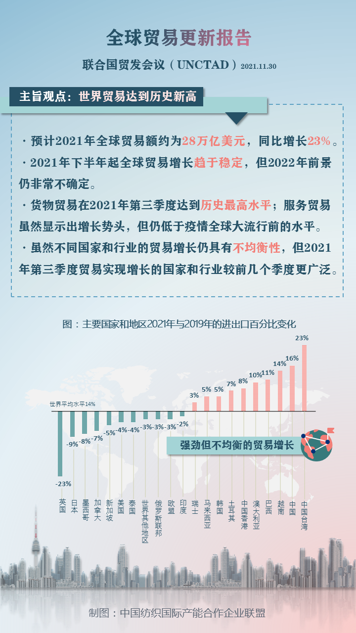 11月30日,联合国贸发会议(UNCTAD)发布全球贸易更新报告,2021年全球贸易强劲复苏在第三季度达到历史新高。