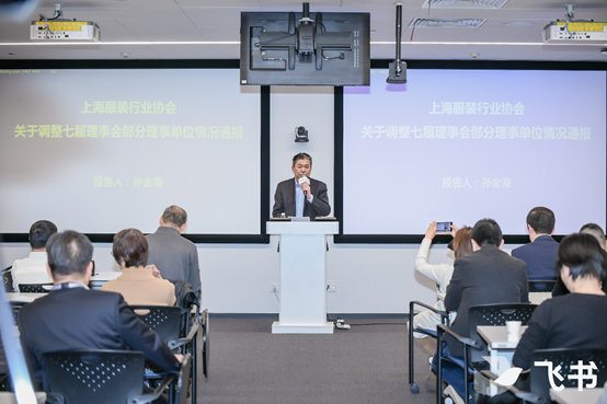 短暂茶歇之后,进入会议下半部分:上海服装行业协会七届三次理事会议程,会议由上海服装行业协会会长朱勇主持。
