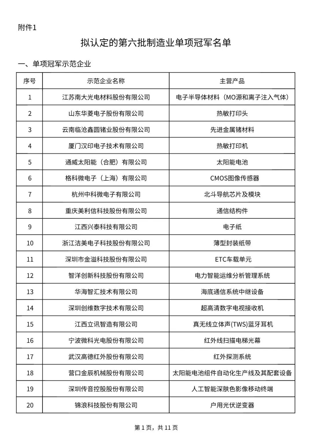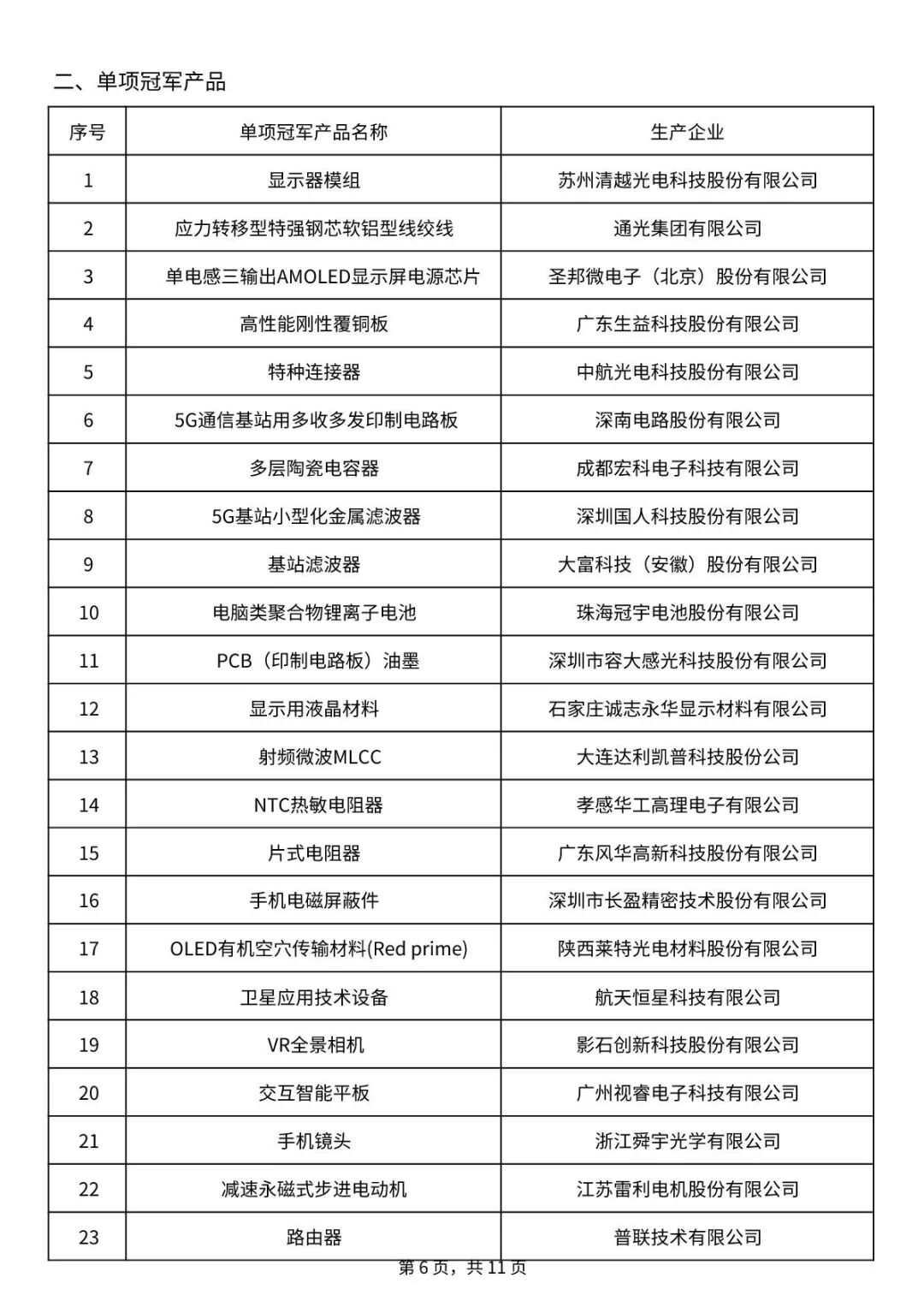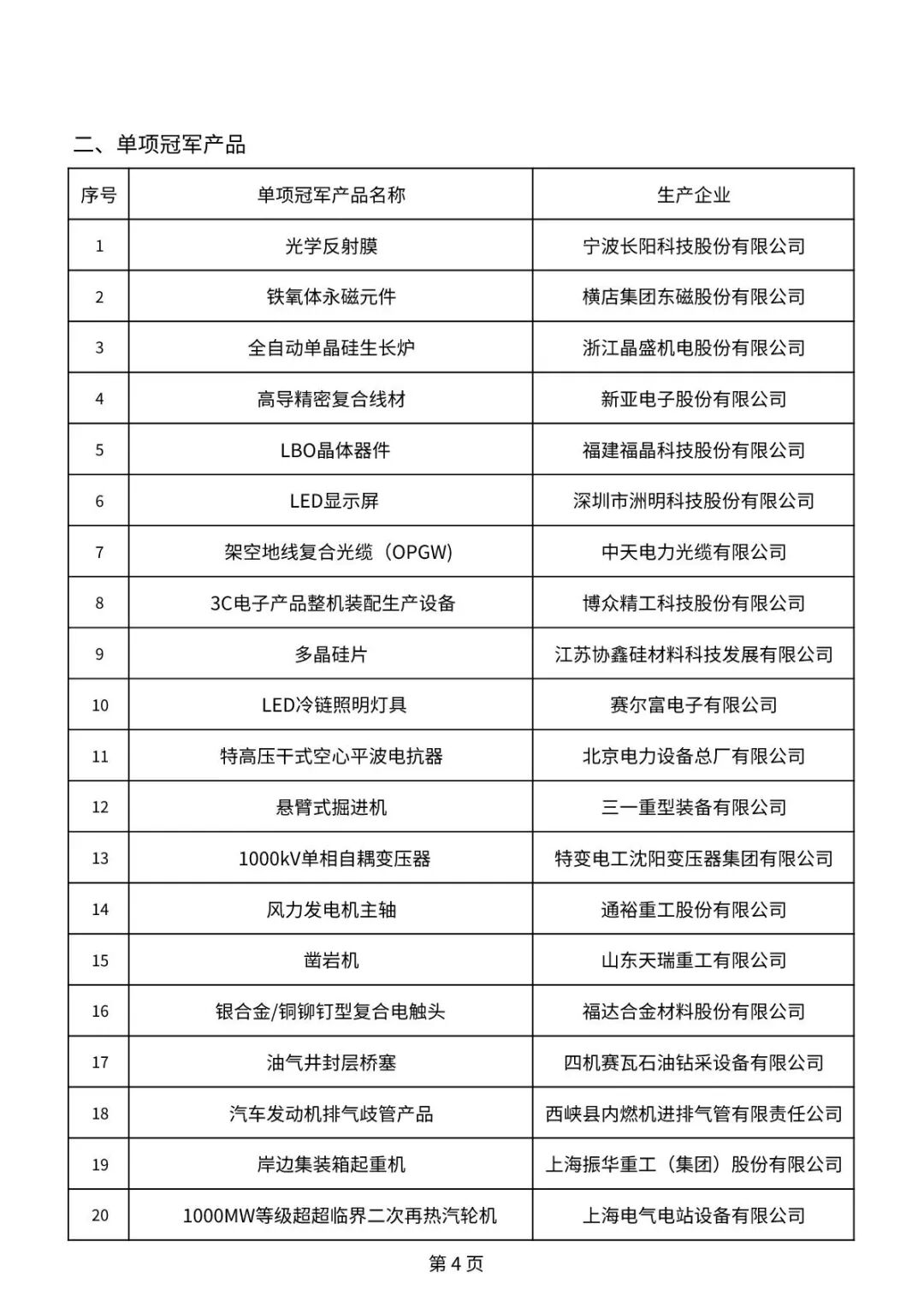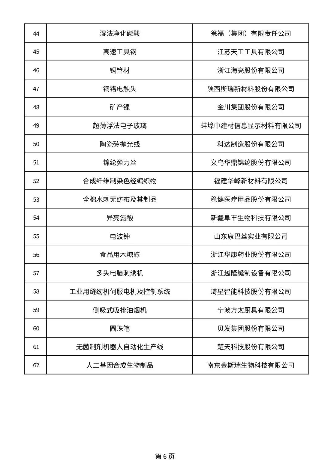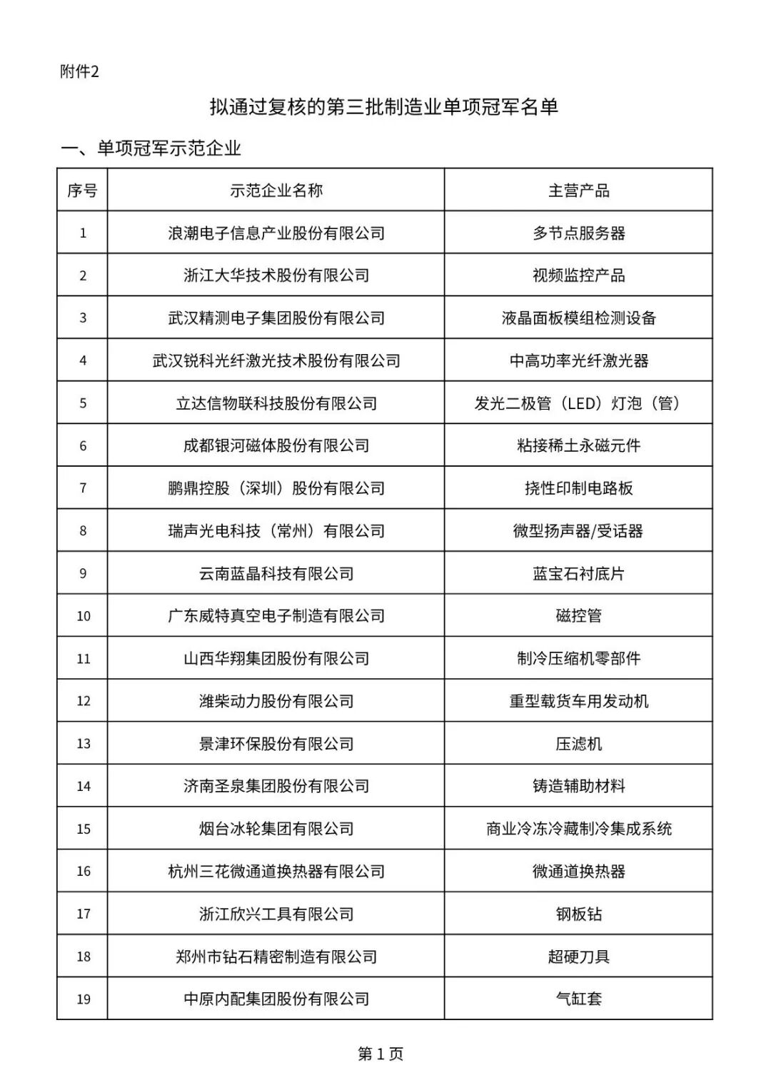 根据《制造业单项冠军企业培育提升专项行动实施方案》(工信部产业〔2016〕105号)、《工业和信息化部办公厅 中国工业经济联合会关于组织推荐第六批制造业单项冠军和复核第三批制造业单项冠军的通知》(工信厅联政法函〔2021〕95号),现将拟认定的第六批制造业单项冠军和拟通过复核的第三批制造业单项冠军名单予以公示。请社会各界监督,如有异议,请在公示期内实名反馈工业和信息化部产业政策与法规司(产业组织处)或中国工业经济联合会,并提供佐证材料和联系方式,以便核实查证。