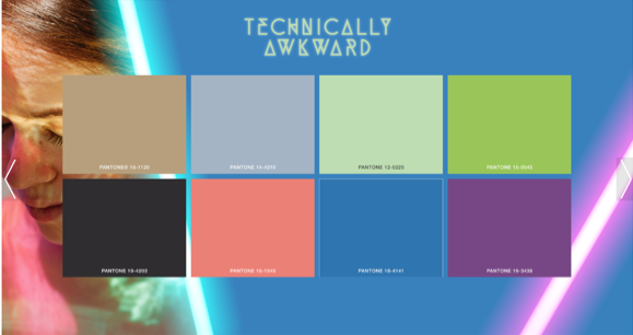 颜色:前面几个颜色带着透明感,而后面的颜色比较外向。暗黑色为轻快的蜡笔色和大胆的色调增添了结构感。珊瑚色和亮蓝色呈现某种怪异的天赋感。电紫色很好地诠释了想象力和创造性,适用于男装、女装、童装、正装、休闲及运动服。通过面料和款式表达尴尬和笨拙。彩虹色针织面料表面的光泽展现怪异的趋势。