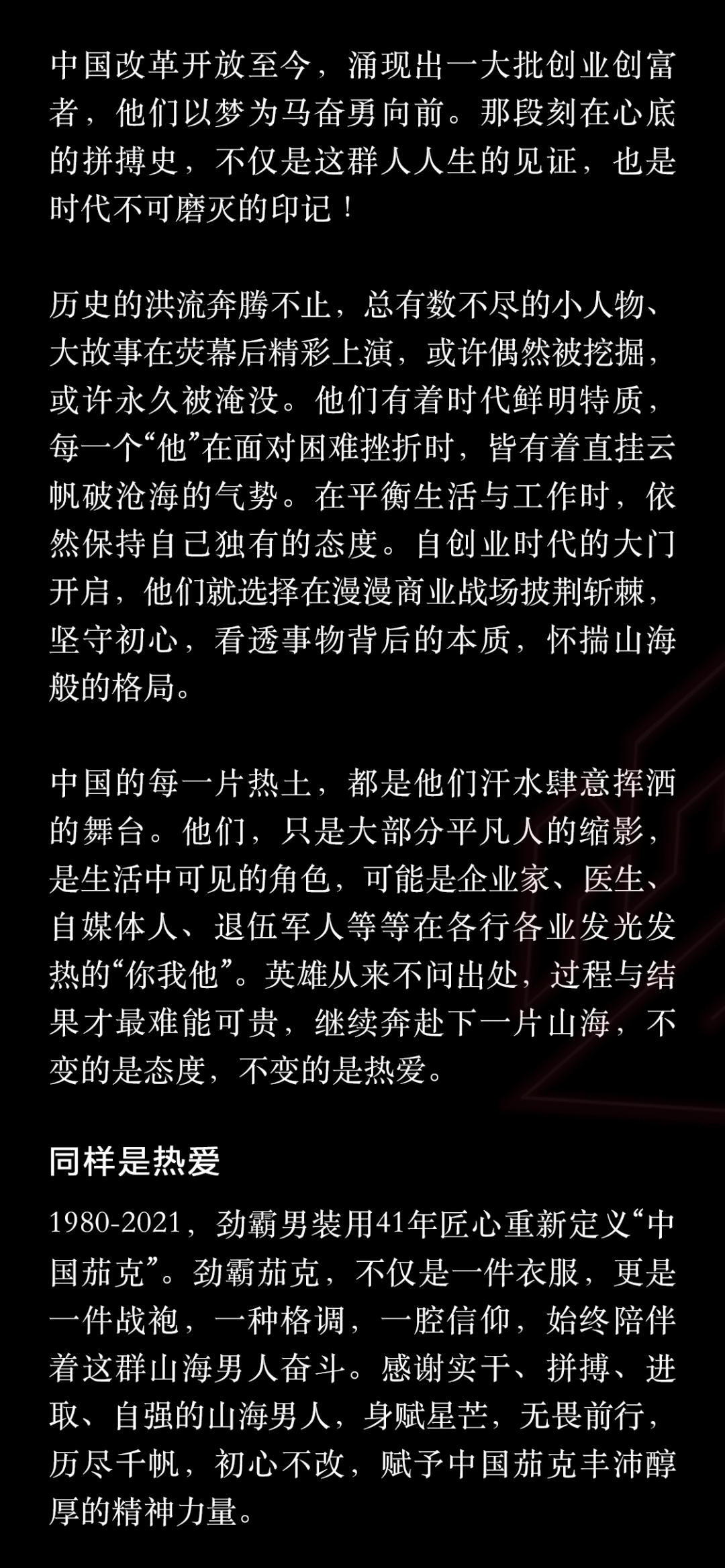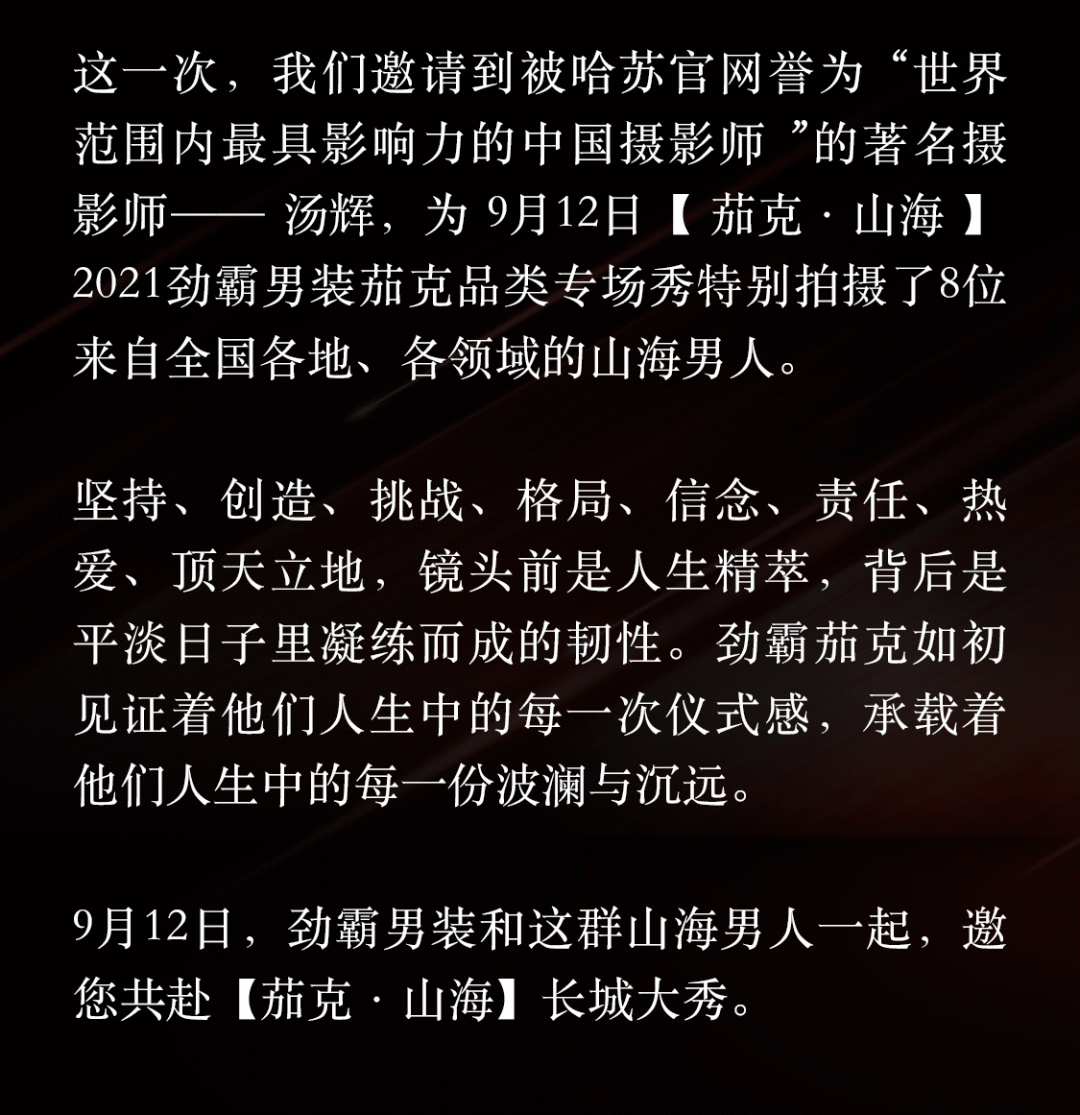 我协会副会长单位劲霸男装(上海)有限公司与您山海有约