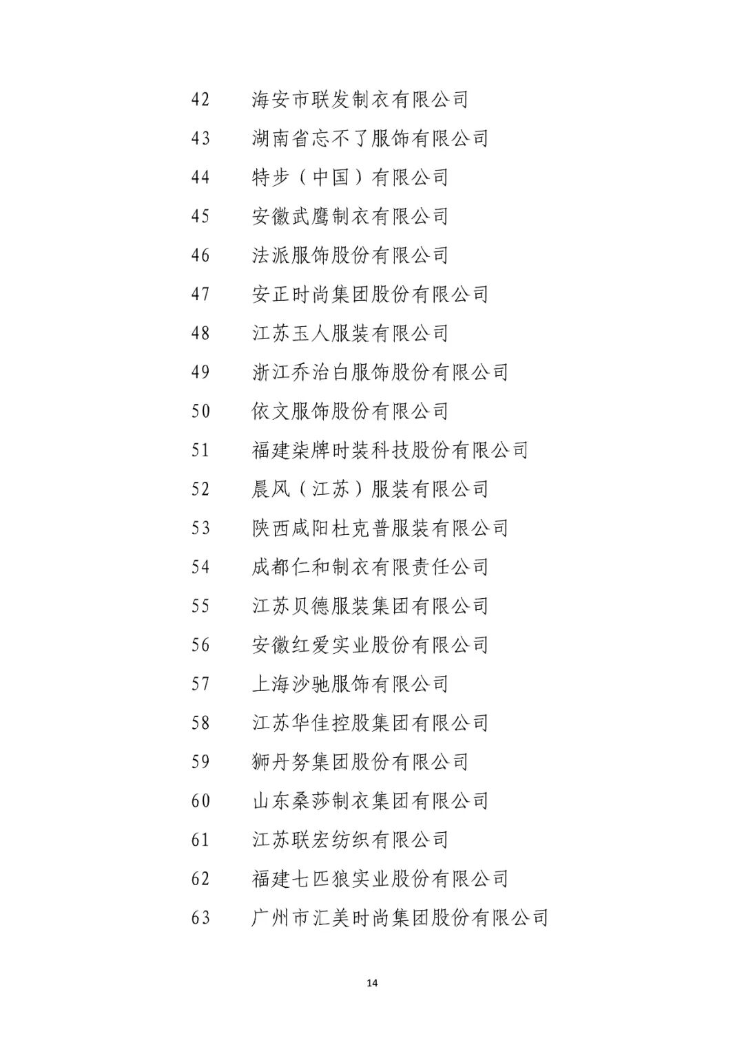 需特别说明,“服装行业百强企业”由中国服装协会基于客观公正的原则在会员企业中依据财务数据进行独家发布,此项工作一直遵循企业自愿参与的原则,属无任何收费的行业工作。中国服装协会从未直接组织、委托授权组织或者合作组织以“服装行业百强企业”名义进行收取费用的表彰、发布或媒体宣传活动,欢迎行业企业和社会各界监督并提出宝贵建议。
