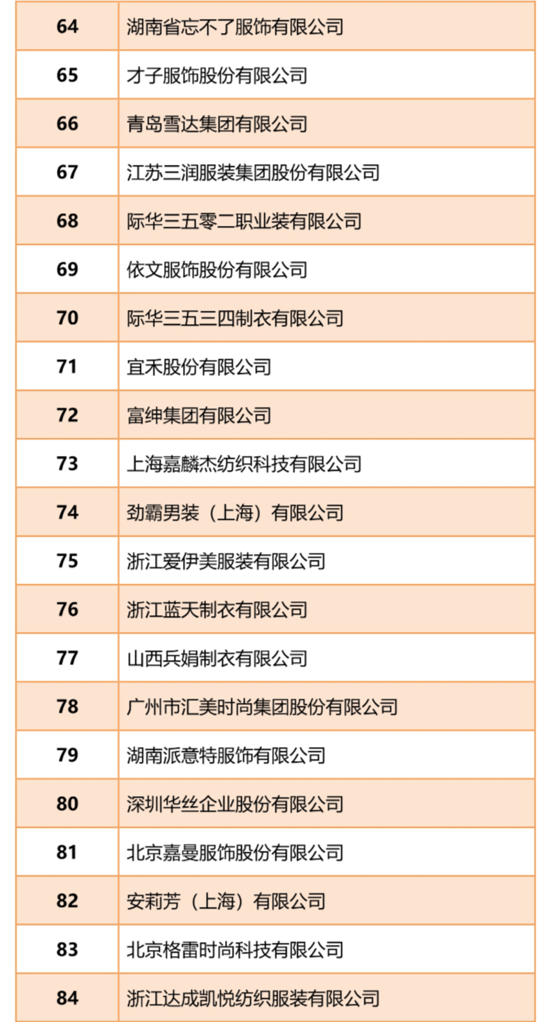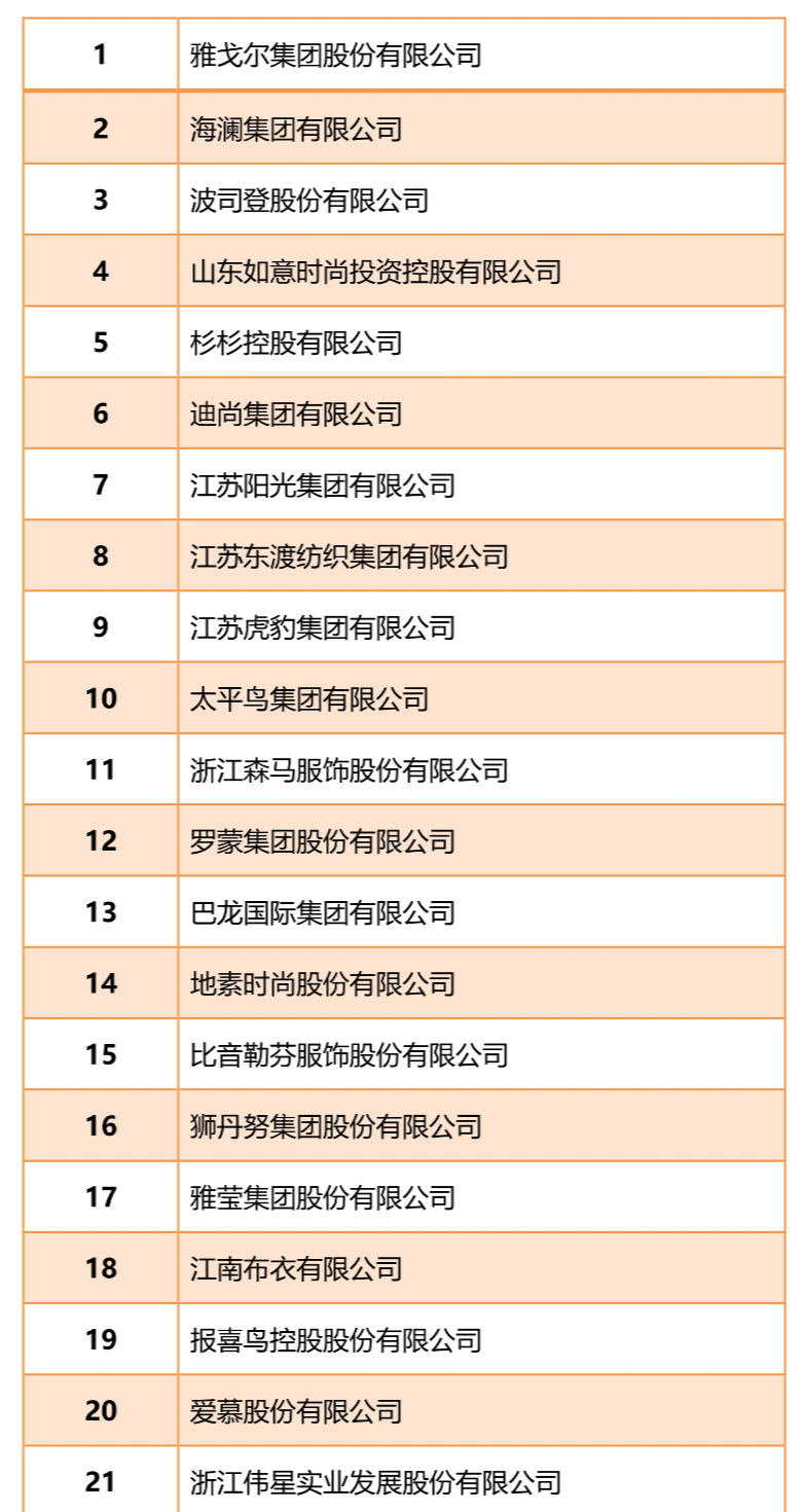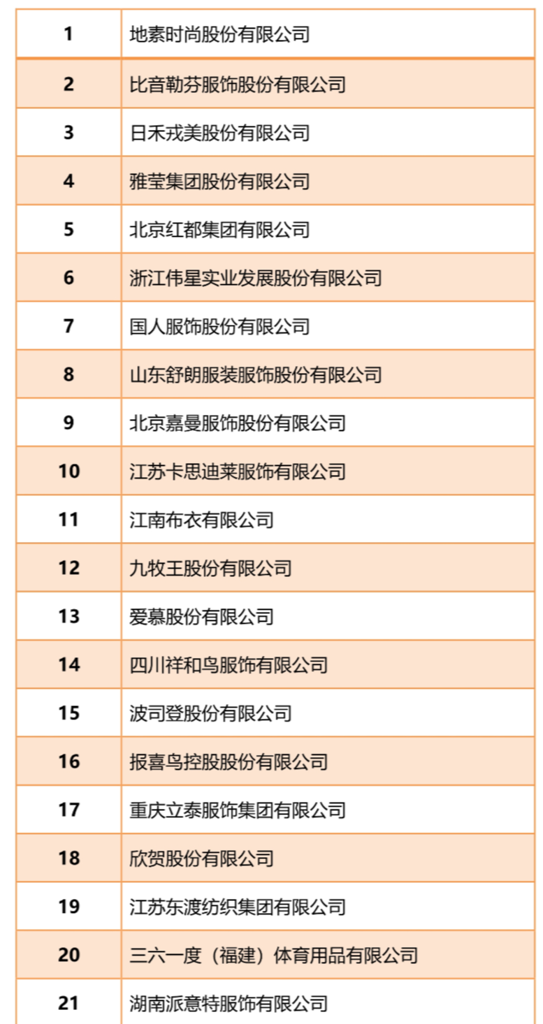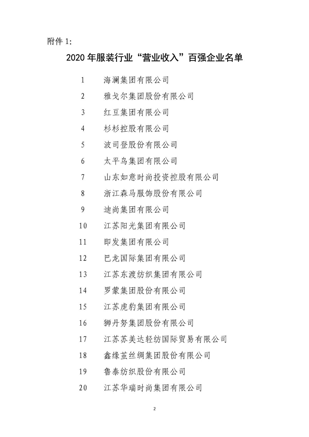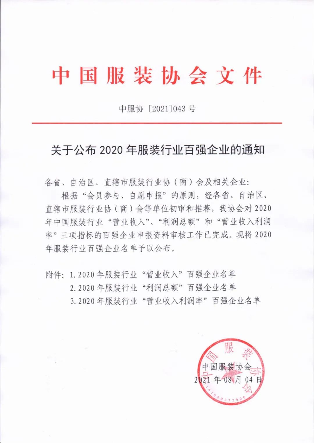2021年8月,中国服装协会正式发布“2020年服装行业百强企业”名单。