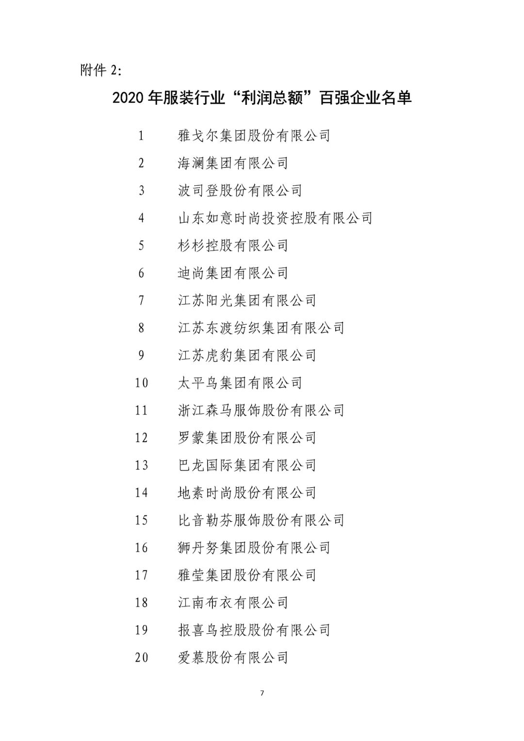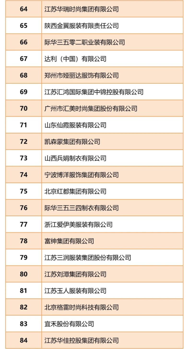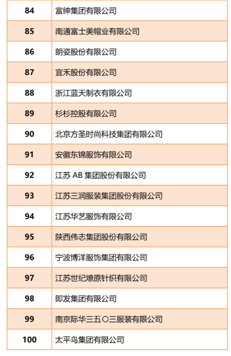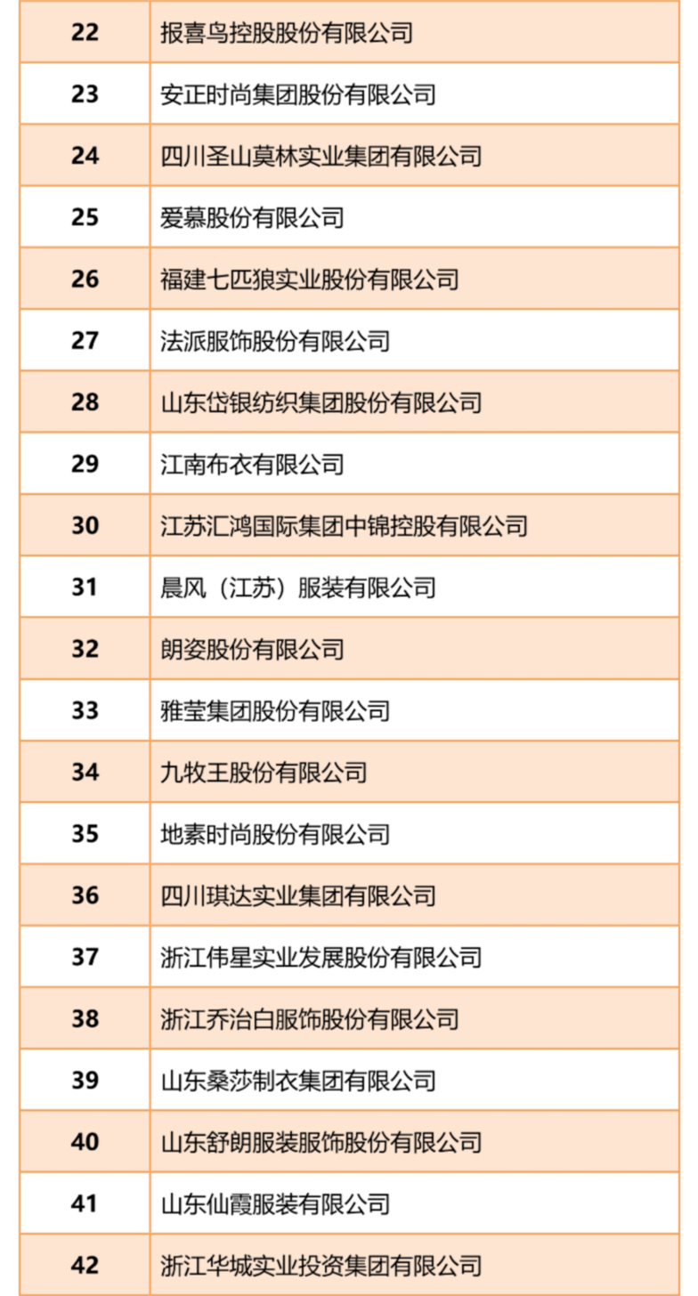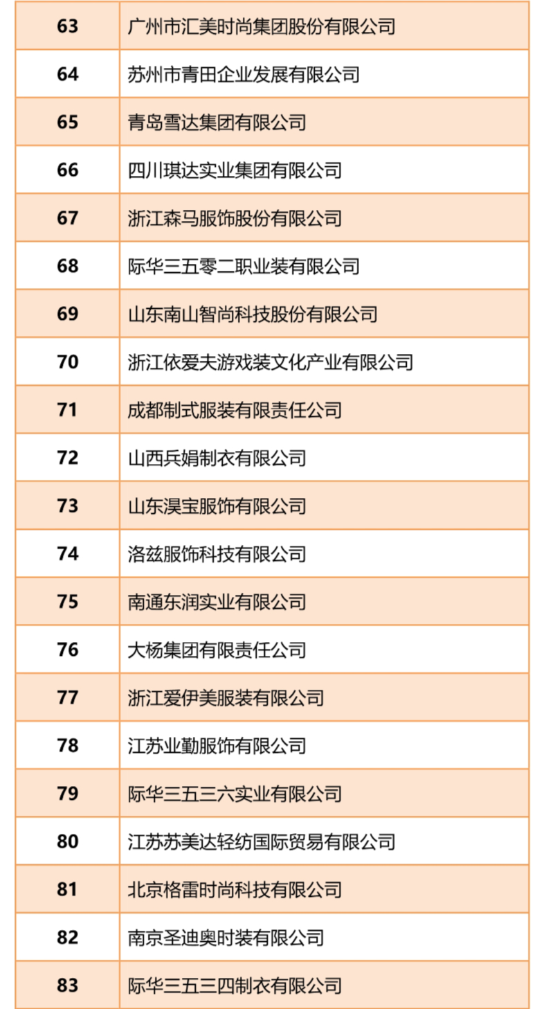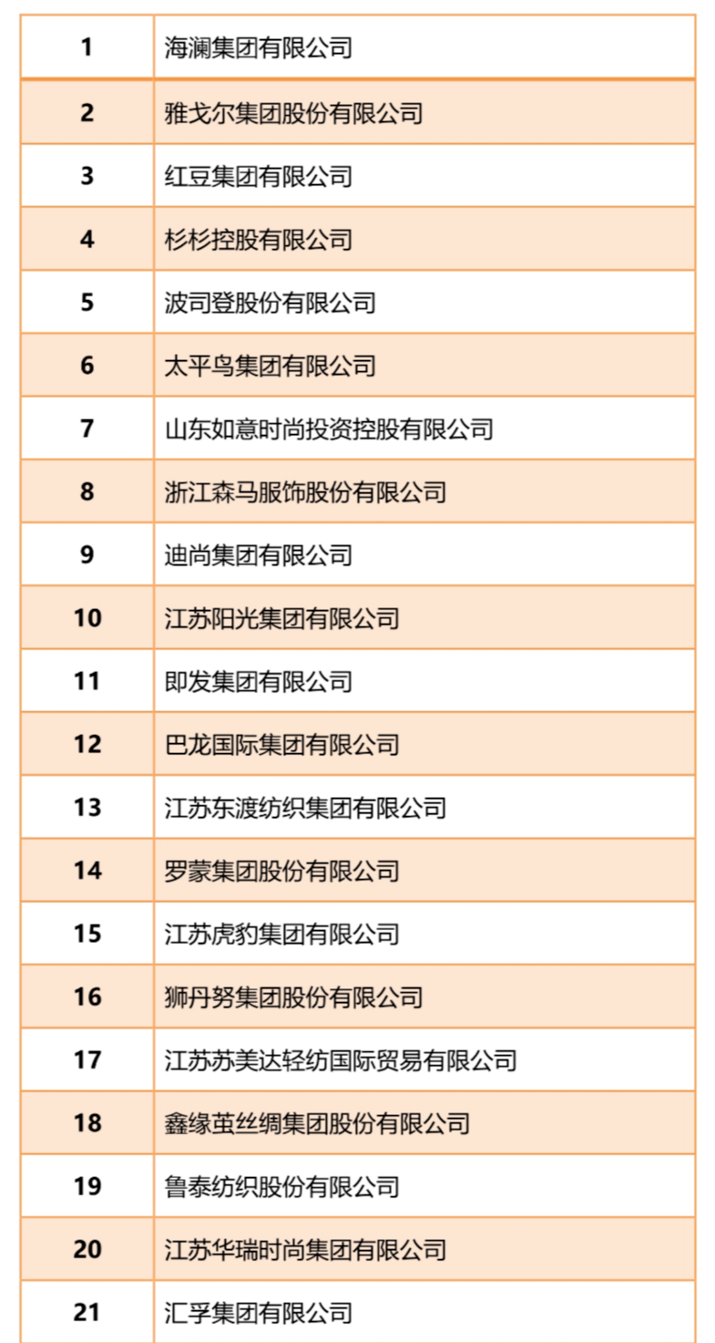 2021年8月,中国服装协会正式发布“2020年服装行业百强企业”名单。