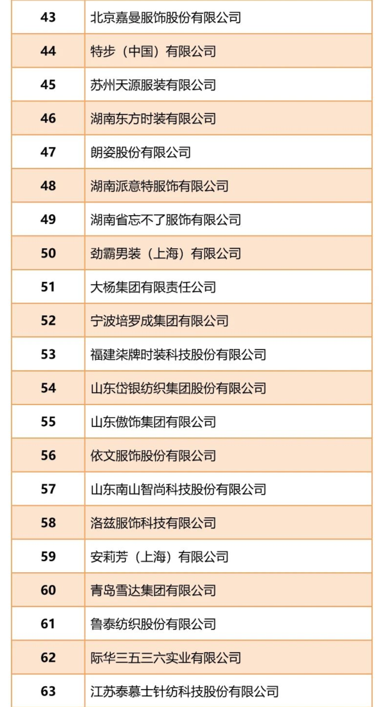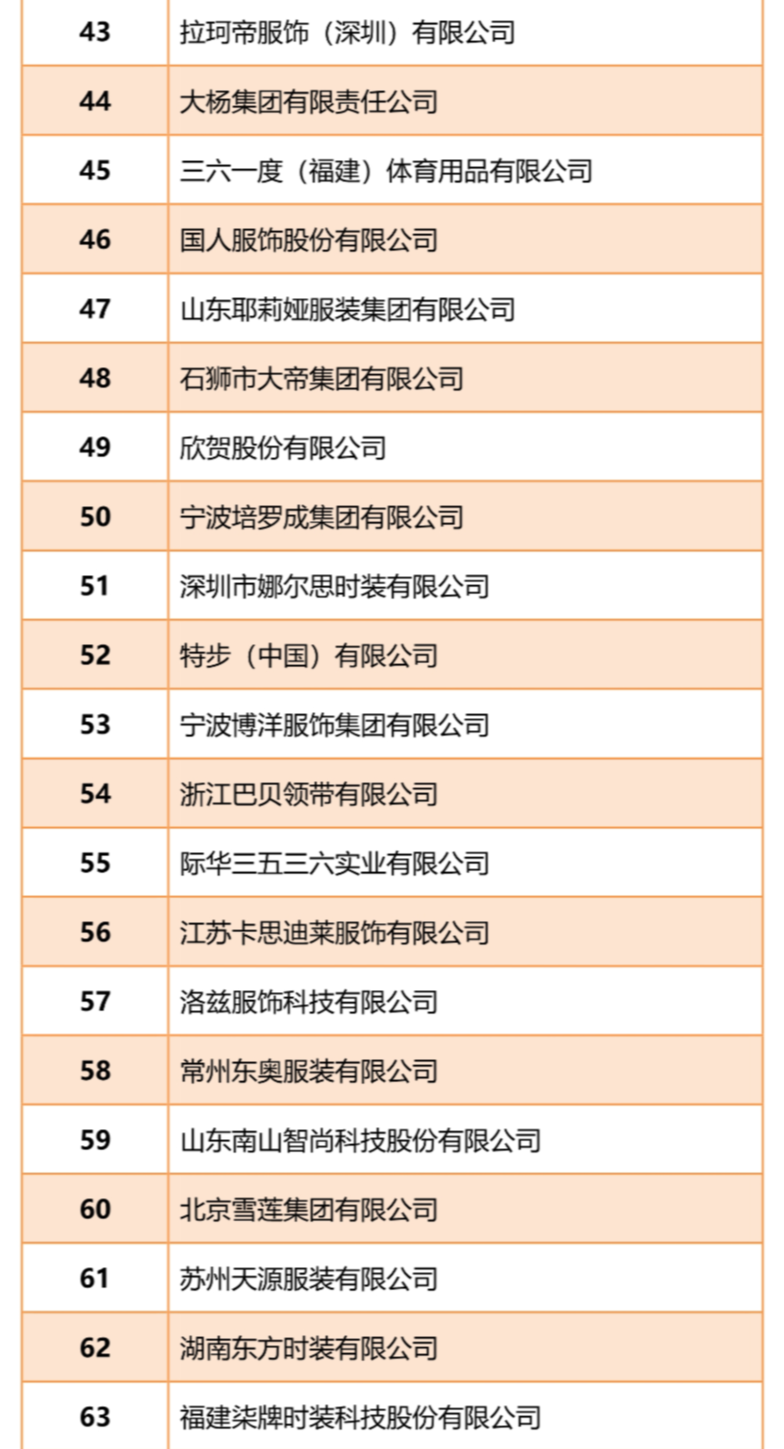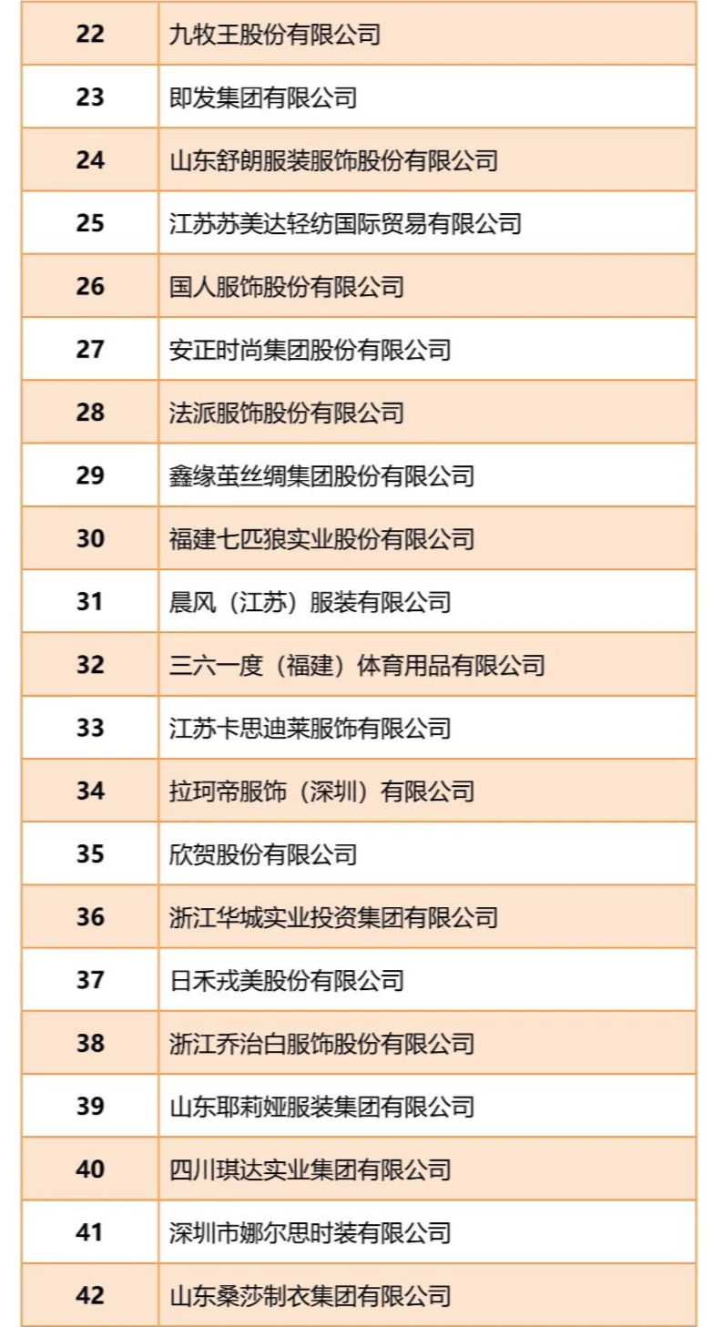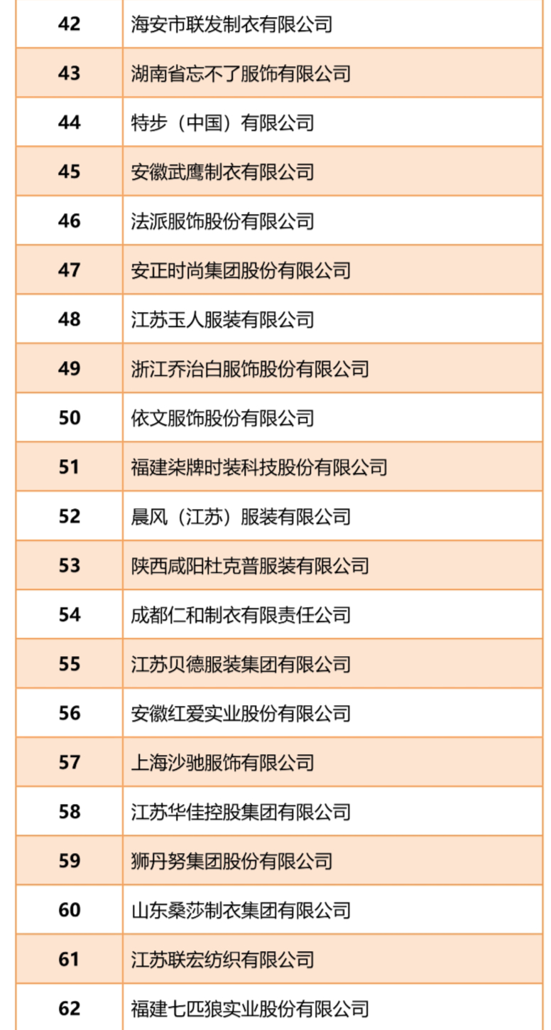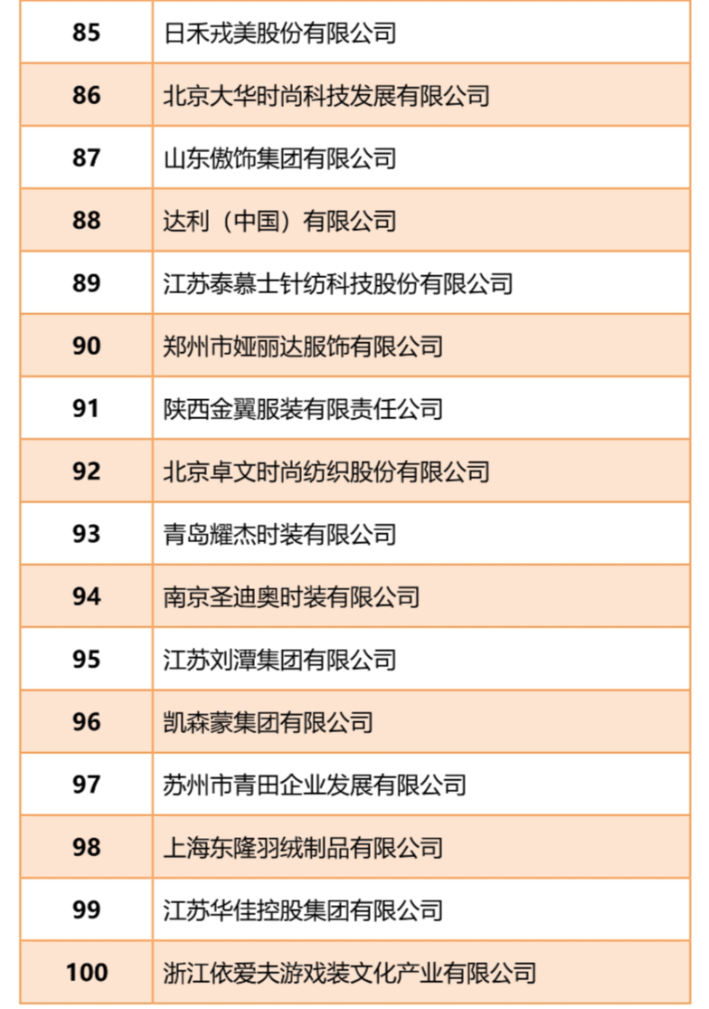 2021年8月,中国服装协会正式发布“2020年服装行业百强企业”名单。
