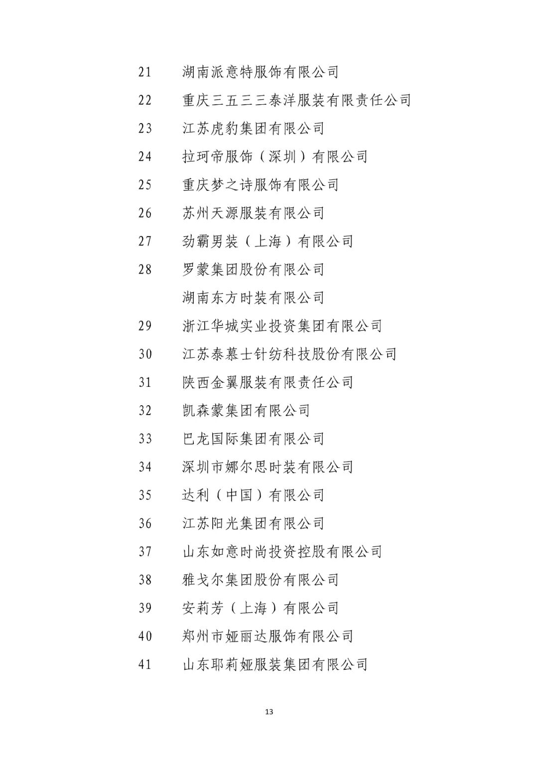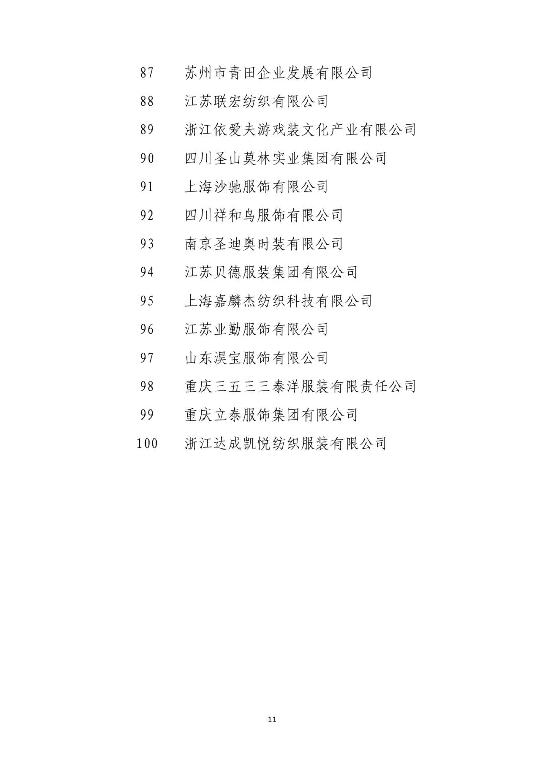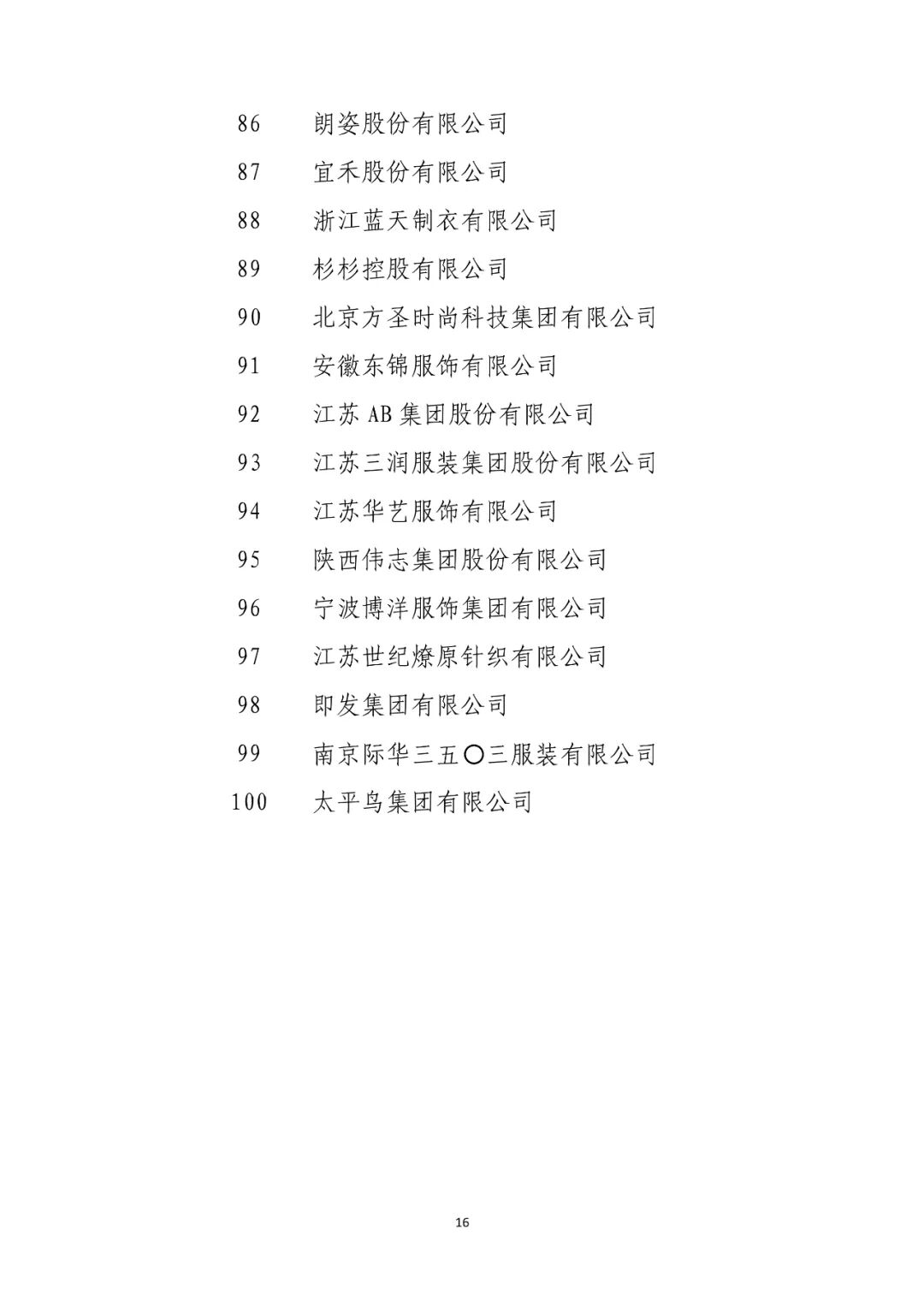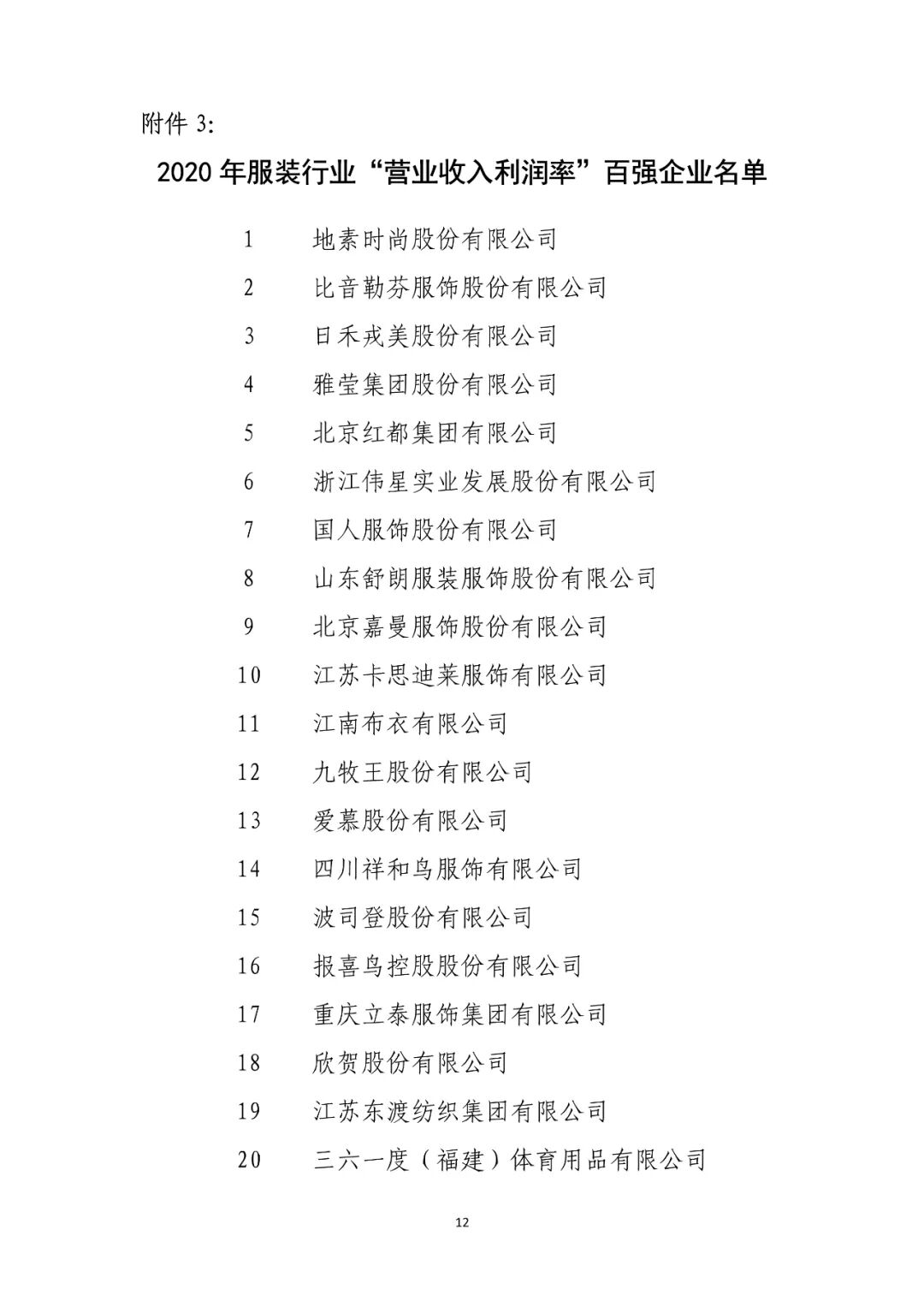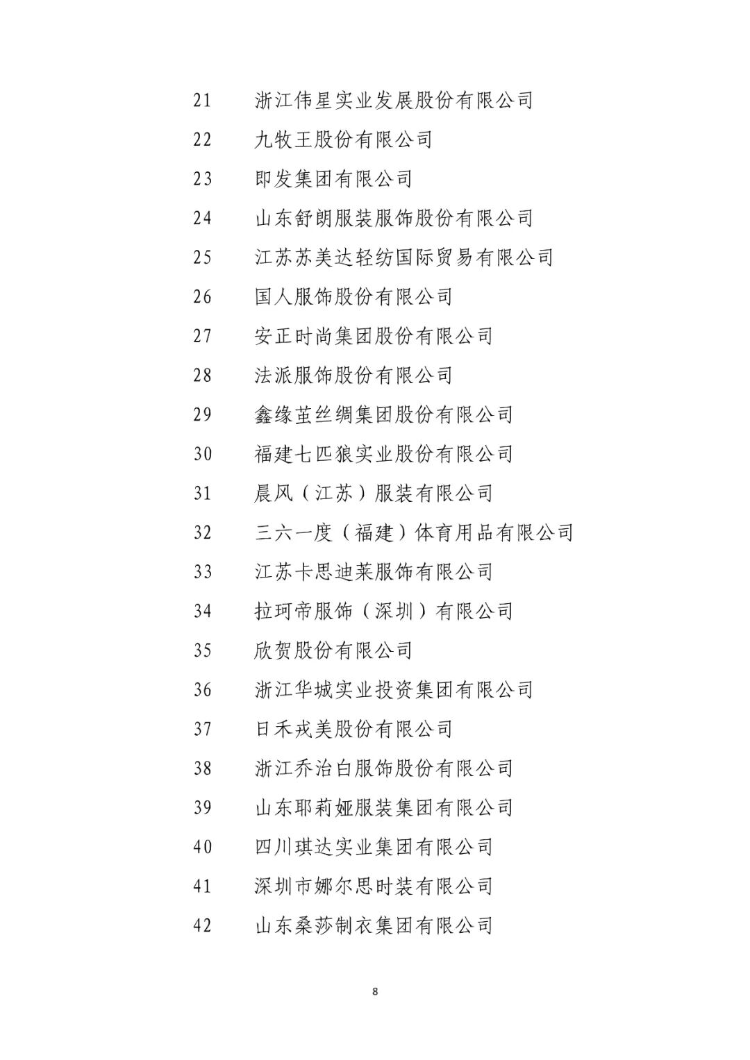 2021年8月,中国服装协会正式发布“2020年服装行业百强企业”名单。