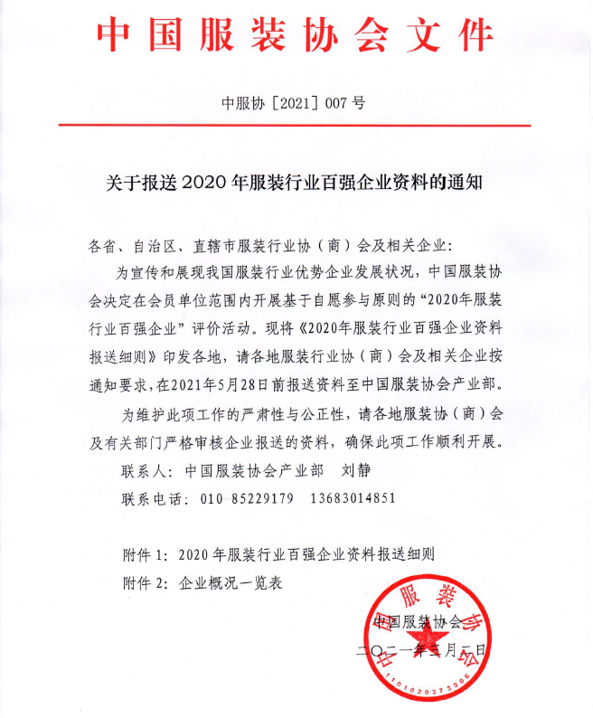“服装行业百强企业”,是由中国服装协会基于客观公正的原则,每一年度在会员企业范围内,依据第三方审计报告中的财务数据进行的独家发布。此项工作一直遵循企业自愿参与的原则,无任何收费。并且,中国服装协会从未直接组织、委托授权,或者合作方式以“中国服装行业百强企业”名义进行任何形式的收取费用的表彰、发布或媒体宣传活动,欢迎行业企业参与并监督此项行业工作。