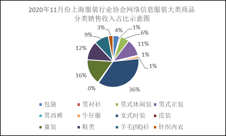 2020年11月份上海服装行业协会网络信息服装商品分类销售情况表
