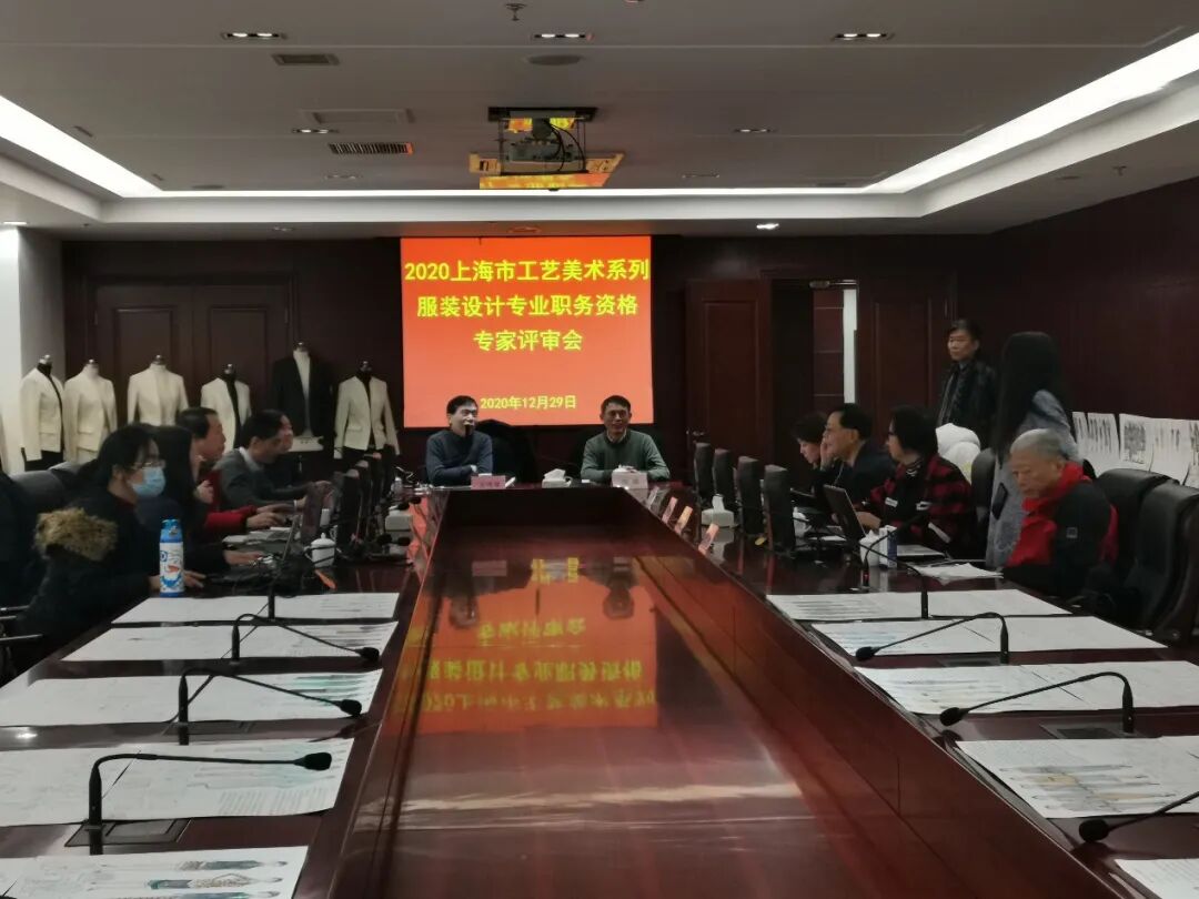 12月29日上午,2020年度上海市工艺美术系列(服装设计)中级专业技术职务任职资格评审在上海市纺织科学研究院有限公司会议室举行。评审团由来自服装行业资深专家组成,分别是上海服装集团品牌发展有限公司高级工艺美术师茅建国、上海市服装研究所有限公司董事长朱晋陆、上海工程技术大学中法埃菲时装设计师学院高级工艺美术师胡强、东方国际集团中央研究院副院长王爱兵、中国美术学院上海设计学院何元跃、上海开开制衣公司高级工程师叶本、上海闻红服饰有限公司闻红、上海工程技术大学袁蓉、上海壹祥服饰有限公司武学凯。