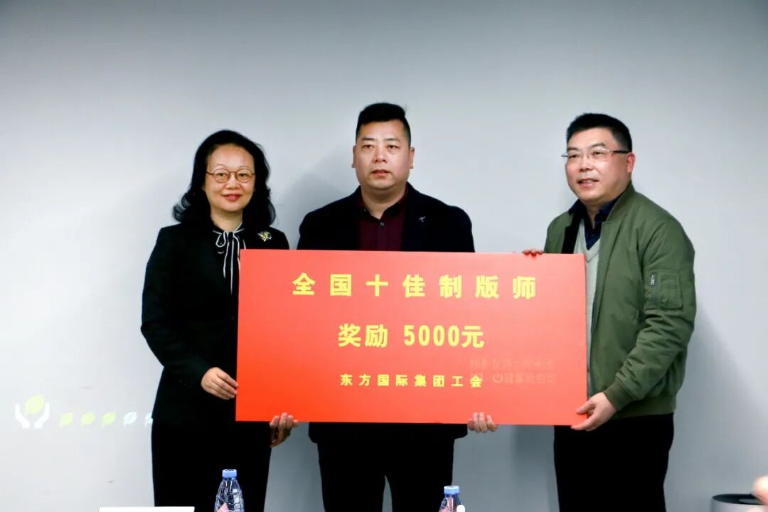 12月2日上午,东方国际集团工会主席黄勤、副主席邵玉虎一行专程来到上海东方国际创业品牌管理股份有限公司(衣架公司)为荣获“全国十佳制版师”称号的赵叶云授奖。东方创业公司工会负责人唐晓岚、衣架公司领导等共同出席。