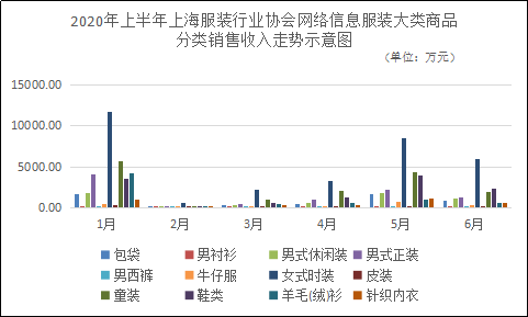 2020年1-6月,销售金额排行前10的品牌中,女士时装品牌“娜尔思”、“KORADIOR”均上榜6次为最多,男衬衫品牌“海螺”、“雅戈尔”均上榜6次为最多,男式休闲装品牌“LACOSTE”、“比音勒芬”均上榜6次为最多且“LACOSTE”始终位列前3,男西裤品牌“ROUFEELIY”、“迈雅”、“VSKONNE”、“虎牌”、“地牌”均上榜6次为最多且“VSKONNE”始终位列前2,包袋品牌“COACH”、“FURLA”、“迈克高仕”、“新秀丽”、“Tory Burch”、“Kipling”均上榜6次为最多且“COACH”和“Tory Burch”始终位列前3,羊毛(绒)衫品牌“鄂尔多斯”、 “皮皮狗”、“凤凰”均上榜6次为最多且“鄂尔多斯”、“皮皮狗”始终位列前2,针织内衣品牌 “安莉芳”、“华歌尔”、“三枪”、 “舒雅”、“黛安芬”、“曼妮芬”均上榜6次为最多,男式正装品牌“VSKONNE”、“CALLISTO”、“HUGO BOSS”、“DAKS”、“EMPORIO ARMANI”均上榜6次为最多,童装品牌“NIKE”、“adidas”“FILA”、“太平鸟”、“E.LAND”、“TEENIE WEENIE”、“江南布衣”均上榜6次为最多,鞋类品牌“ECCO”上榜6次为最多且始终名列榜首。