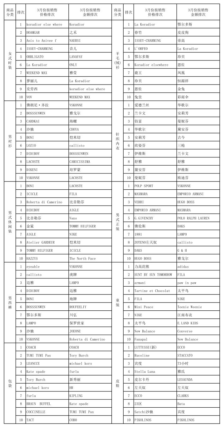 3月销售品牌排行榜