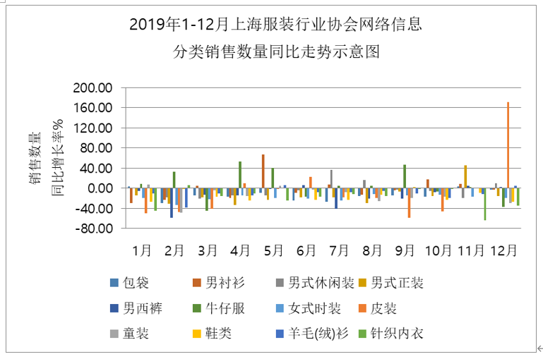 上海服装行业协会网络信息定期统计报表显示,2019年1-12月,上海十大商场服装大类商品总体累计销售440.11万件,同比下降15.83%,累计销售收入32.16亿元,同比下降7.85%,平均累计销售单价730.66元,同比上升9.48%。从上海服装行业协会网路商场销售情况来看,2019年1-12月的销售数量和金额同比双双下降,这说明,在互联网线上销售的冲击下,继续调整升级,转变营销策略,仍然是传统实体零售未来需要着重思考的。