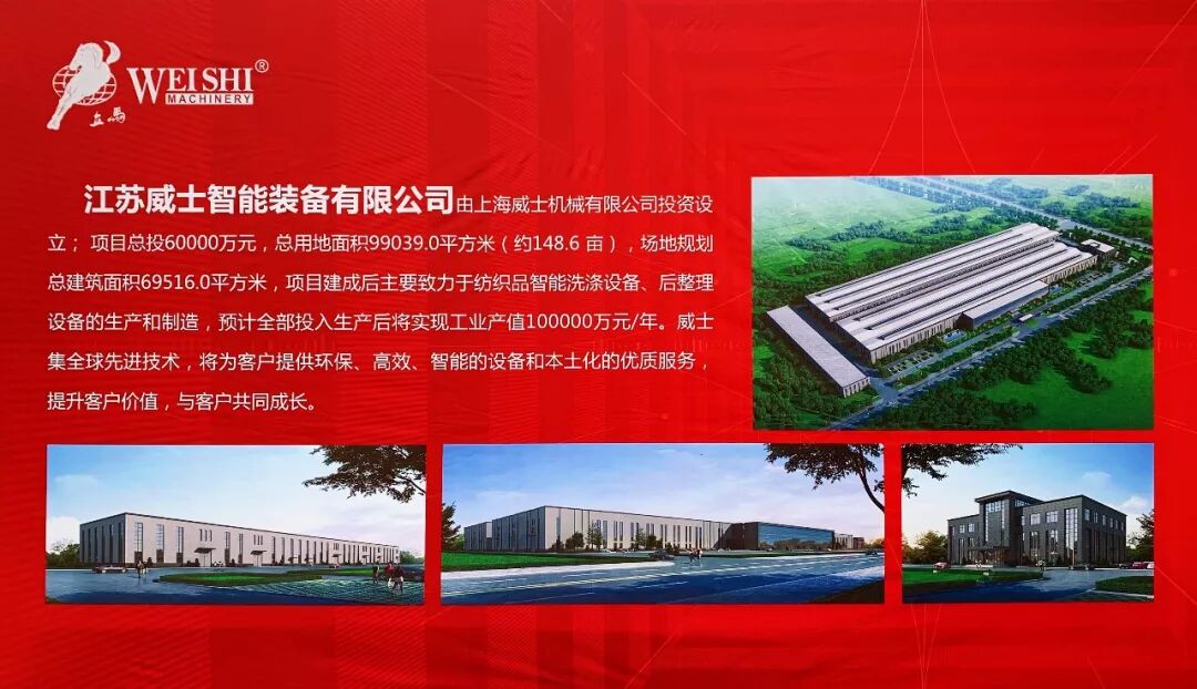 新年伊始,元月3日,上海威士机械有限公司旗下的江苏威士智能装备有限公司工厂奠基仪式在江苏常州市武进区隆重举行。奠基仪式邀请到了常州市武进区人民政府区长、武进国家高新区管委会主任戴士福、武进国家高新区管委会副主任祝正庆、管委会副主任孙洋、管委会副主任蒋志龙,江苏恒立液压股份有限公司董事长汪立平等领导参加。上海威士机械有限公司董事长吕立毅携副总经理顾靖、陆魏强及中高层管理人员参加仪式,共同见证了这一威士发展史上的重要难忘时刻。江苏威士智能装备有限公司是由上海威士机械有限公司投资,设立在常州武进区的生产制造基地。项目总投资60000万元,总用地面积99039平方米(约148.6亩),场地规划总建筑面积69516平方米,主要致力于纺织品智能洗涤、后整理设备和高端服装后整理设备的生产与制造。预计全部投入生产后将实现工业产值100000万/年。项目建成后,年销售和纳税将再次实现新突破,市场前景巨大,梦想腾飞,是威士平台新的奋进起点!威士机械是一家专注于自主研发、制造自动化制衣设备、纺织品智能化洗涤设备、后整理设备及自动化物流输送系统的高新技术企业。旗下的“立马”是中国驰名商标。威士汇集全球高端先进技术,将为客户提供环保、高效、智能的设备和本土化优质服务,提升客户价值,与客户共同成长,共享未来。江苏威士智能装备有限公司的奠基仪式圆满举行,标志着威士机械常州制造基地项目工程正式拉开序幕,更标志着威士机械又迈上了一个新的台阶,向智能化制造迈出了坚实的一步。