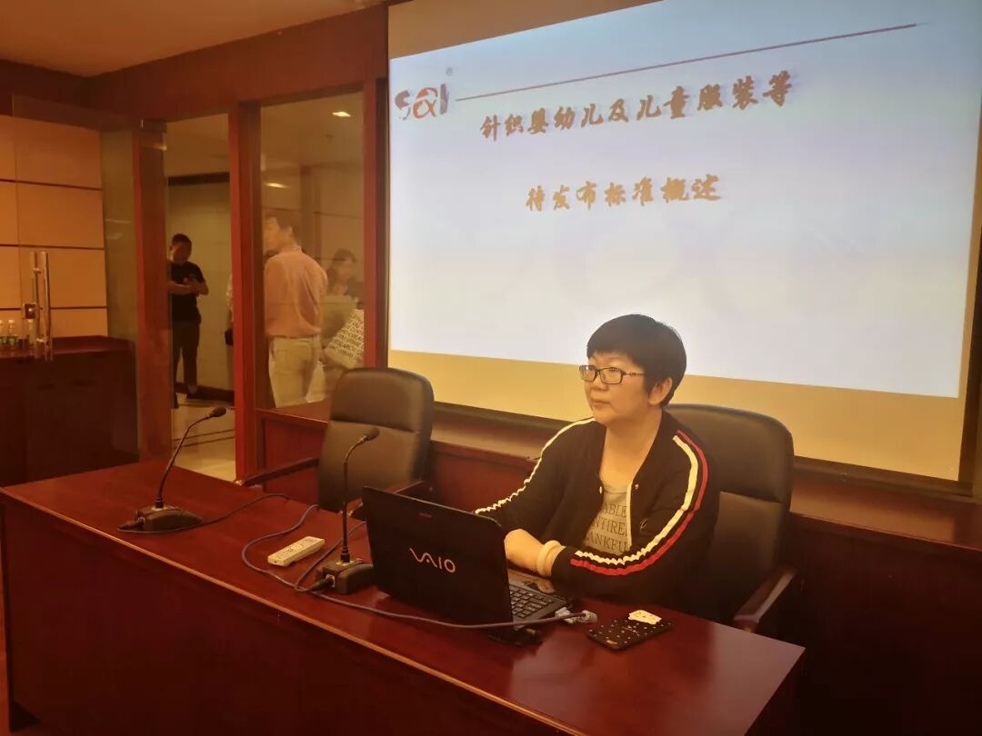 上海市质量监督检验技术研究院纤维检验所科技质量科裘惠敏副科长分别对《针织婴幼儿及儿童服装》、《针织休闲服装》、《针织保暖内衣》标准审定稿做了介绍。