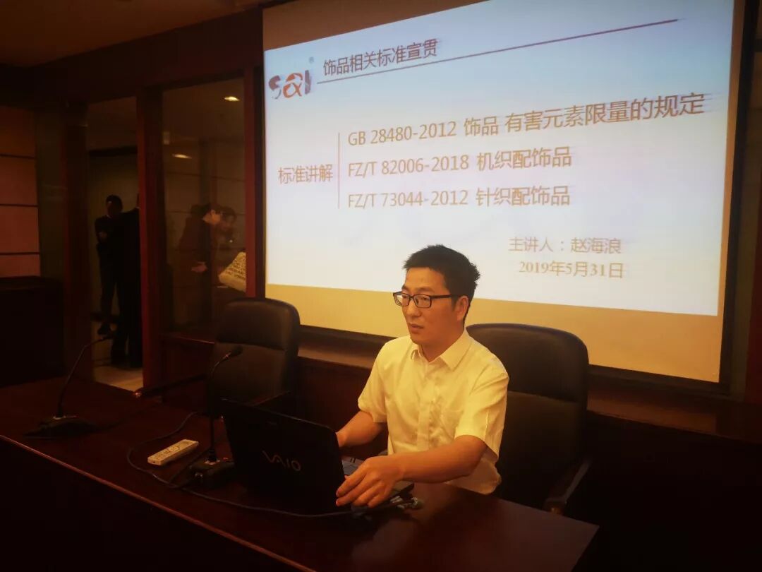 上海市质量监督检验技术研究院纤维检验所检测二室赵海浪副主任,对GB28480-2012《饰品 有害元素限量的规定》中各类有害物质限量及检测方法做了详细讲解,随后对FZ/T82006-2018《机织配饰品》FZ/T73044-2012《针织配饰品》中的异同点做了清晰阐述。