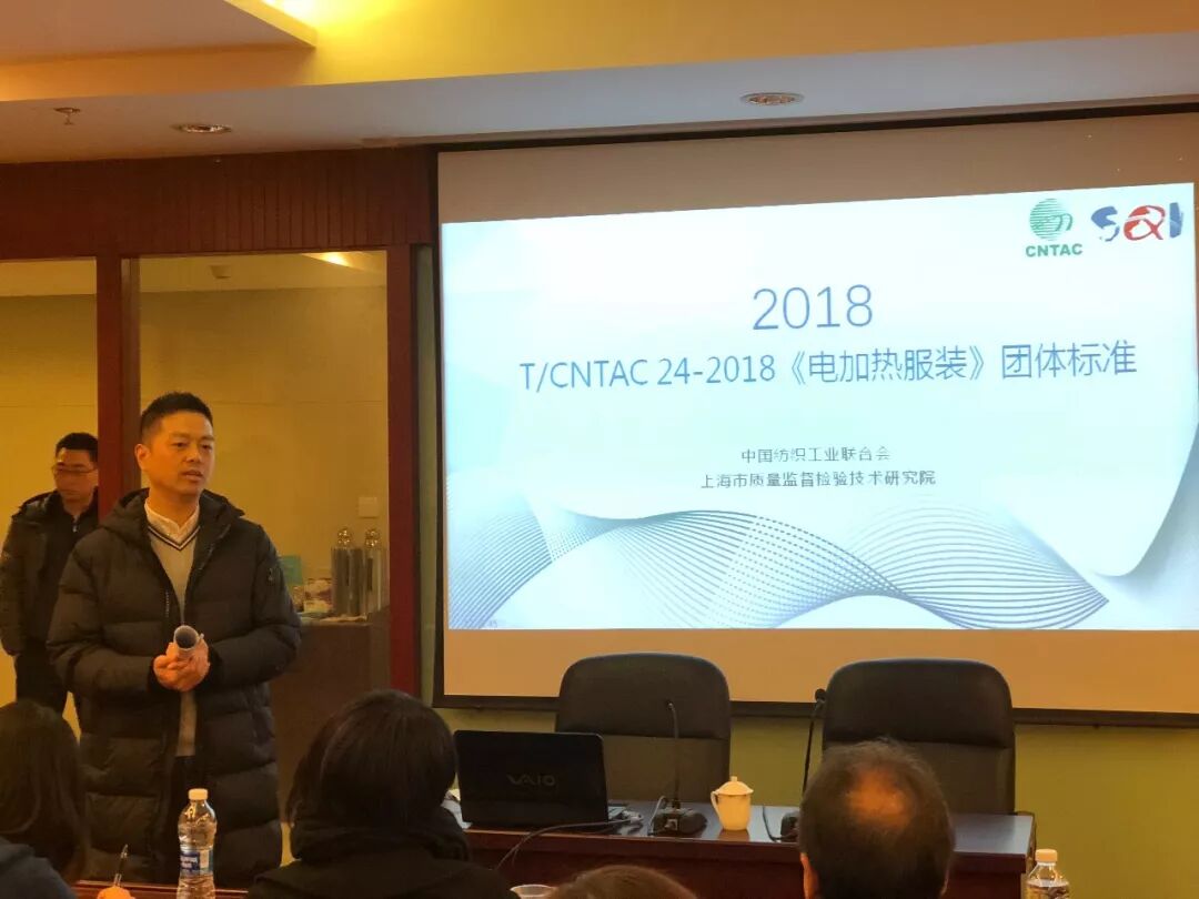 上海市质量监督检验技术研究院纤维检验所李璇副科长、周全副所长对T/CNTAC 24—2018 《电加热服装》的术语和定义、要求、检测方法、检验规则以及标志、包装、运输和贮存。标准使用于面层为纺织织物、使用柔性电阻性电热元件进行加热的电加热服装进行了深入讲解。