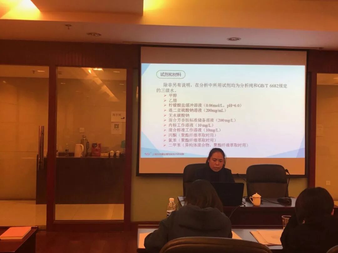 上海市质量监督检验技术研究院纤维检验所检测二室副主任谭玉静对T/CNTAC 20—2018《纺织品禁用偶氮染料快速测定方法》规定了采用气相色谱-质谱法测定纺织品中可分解出致癌芳香的快速测定方法做了解析。精湛的讲解内容博得代表们一致赞赏,互动答疑环节为企业代表一一解答,通过宣贯、互动答疑等环节使参会代表对新标准有了全面准确地了解,充分肯定了此次宣贯会的意义和价值。